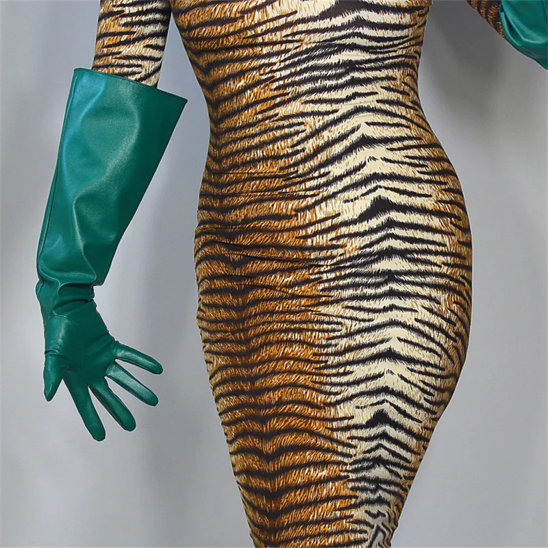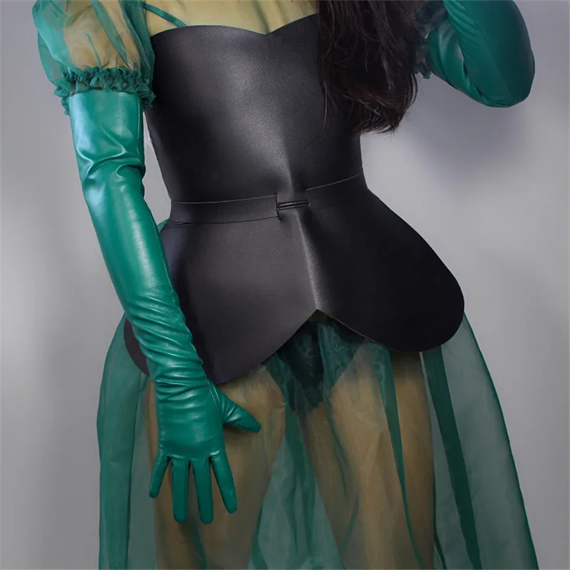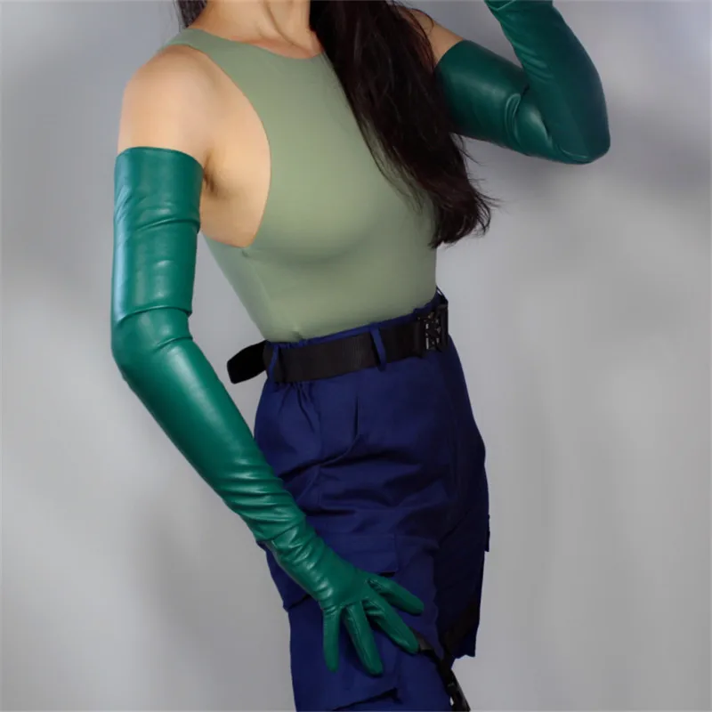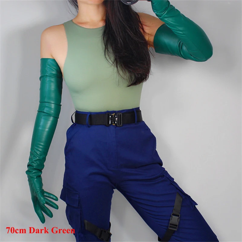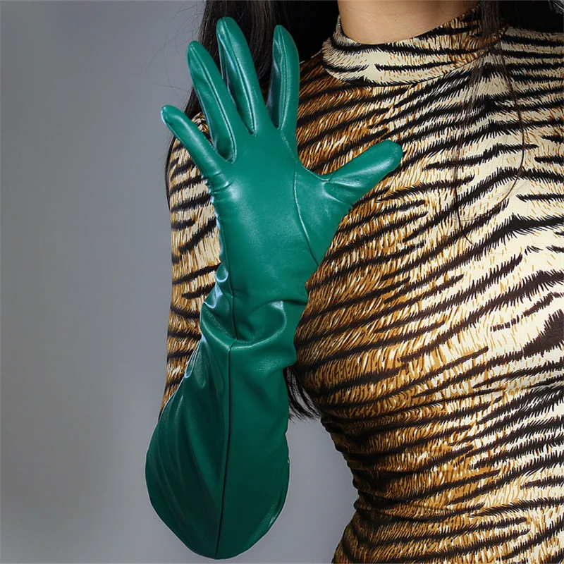 Кожаные перчатки для сенсорного экрана, удлиненные женские перчатки 60 см из искусственной кожи, овечья кожа, лес, изумруд, темно-зеленые, фруктовые, зеленые, WPU145