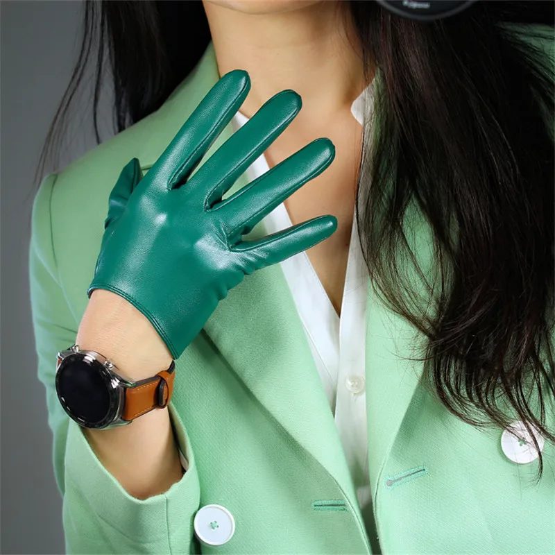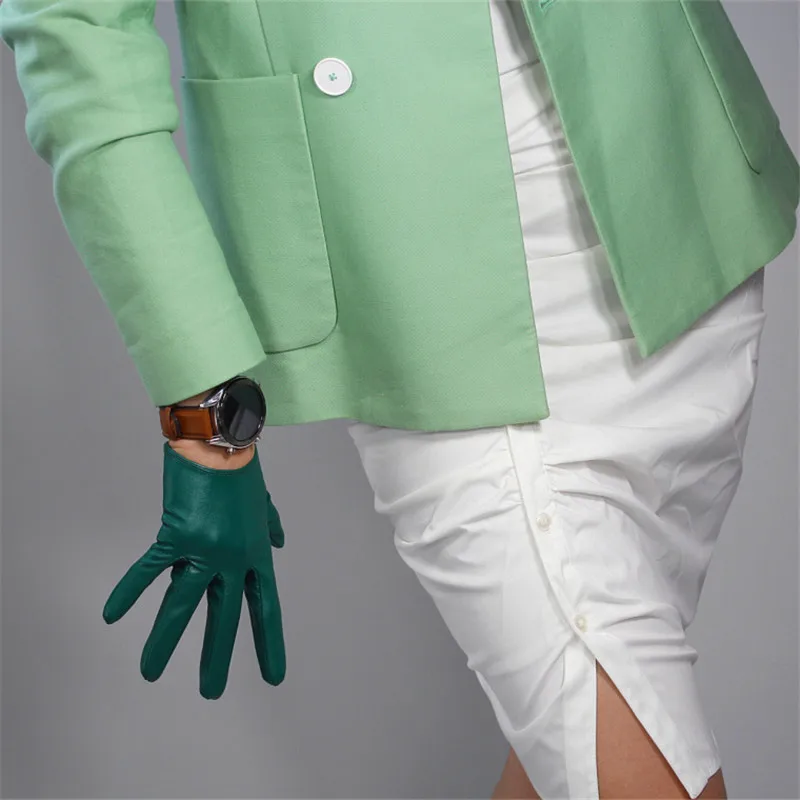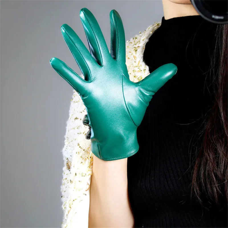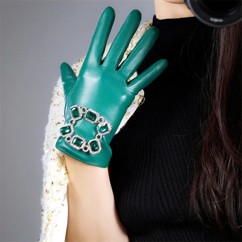 Кожаные перчатки с сенсорным экраном 60 см удлиненные кожаные перчатки из овечьей кожи с изумрудом, темно-зеленые женские перчатки с фруктами WPU145