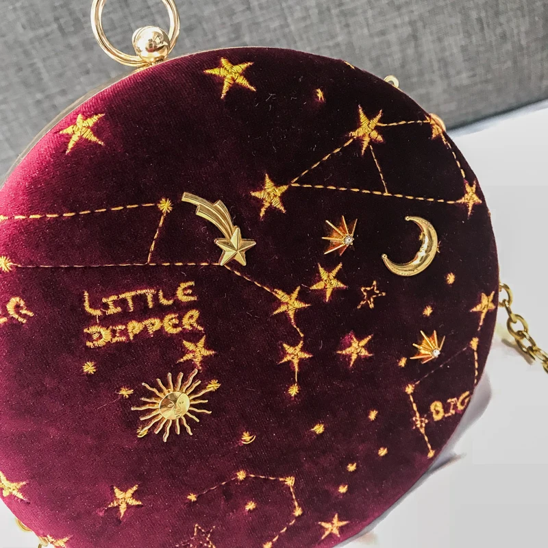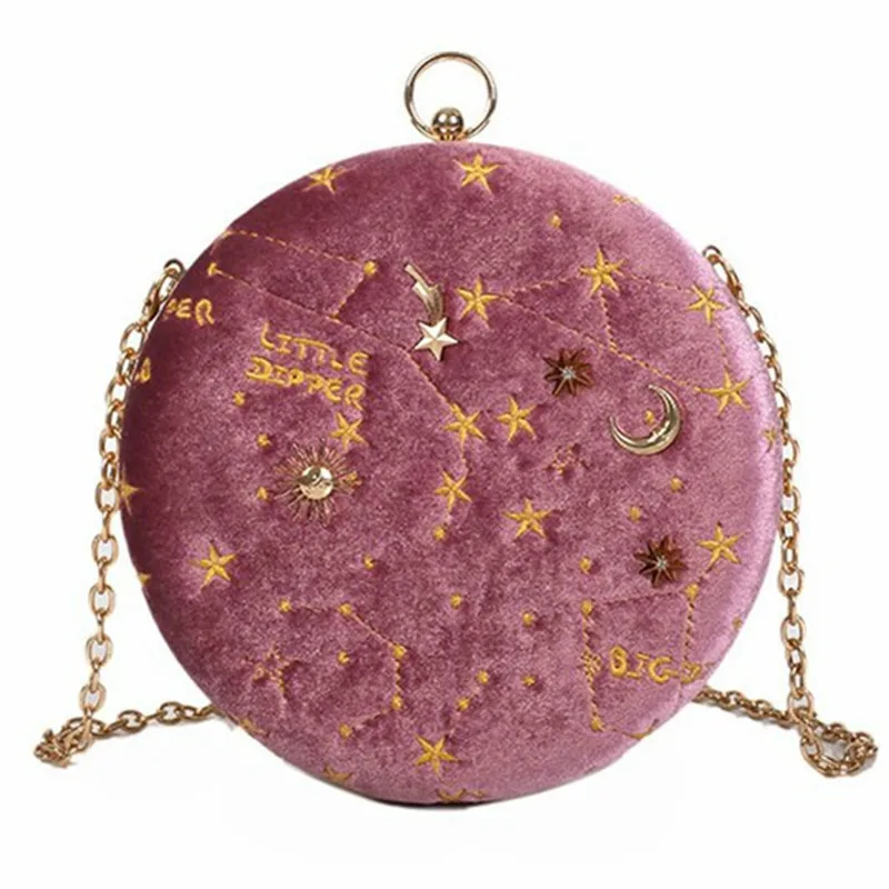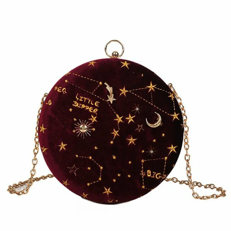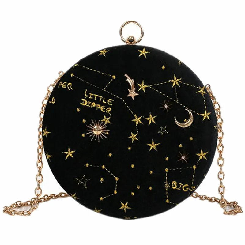Женская сумка через плечо, круглая, с цепочкой и звёздным небом