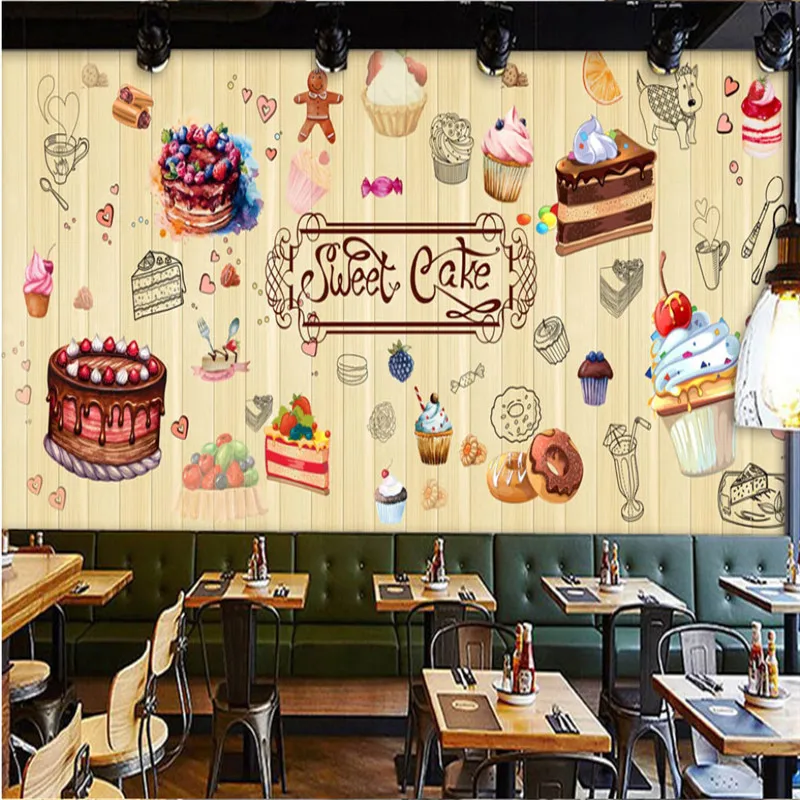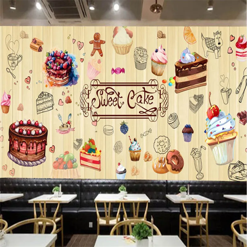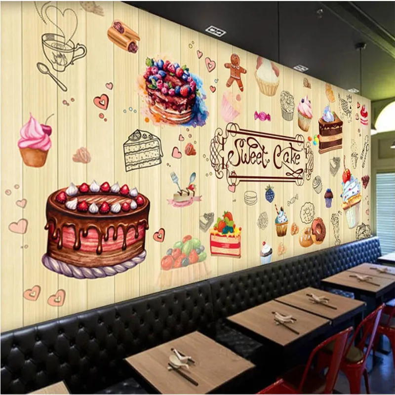 Пользовательские Ретро десерт доска фон настенная бумага 3D выпечки торт магазин промышленный Декор настенная бумага Papel де Parede 3D