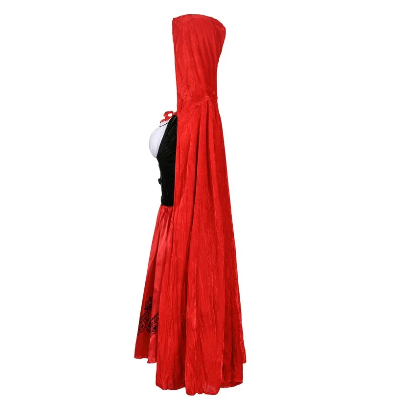 Маленький красный костюм с капюшоном для верховой езды, платье на Хэллоуин для взрослых женщин, праздничный нарядный костюм, сказочный косплей, фантазия с накидкой