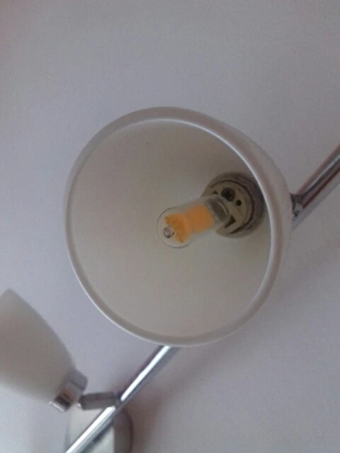 До Минска посылка шла ровно месяц. Брал warm white 12W, светят ярче галогенок на 40W. На фото верхняя лампа галоген, нижняя светодиодная. К сожалению достаточно сильно мерцают.