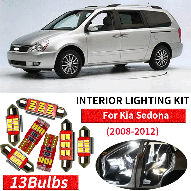 13X белые светодиодные с Canbus Автомобильный интерьер комплект ламп для 2008-2012 Kia Sedona led интерьер КУПОЛ багажник огни