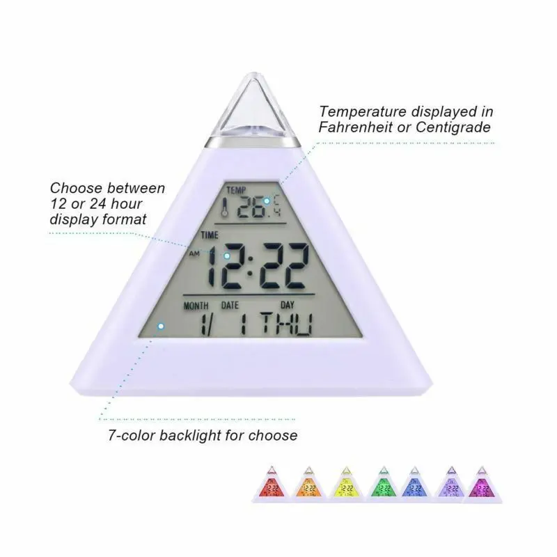 Будильник в форме пирамиды с 7 светодиодный дами и изменением цвета.