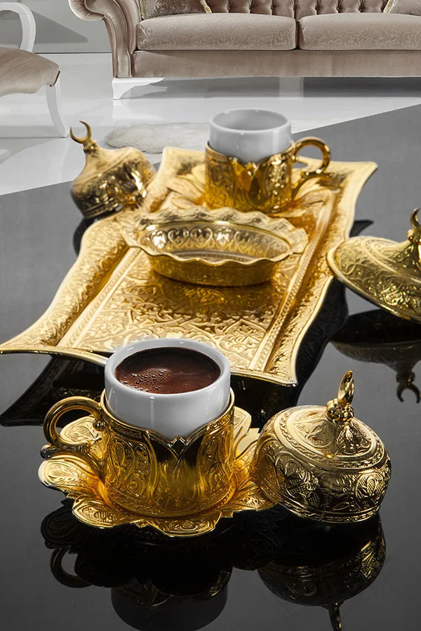 Набор 2 - (9 шт.) Медный турецкий чай Кофейные чашки для эспрессо Набор анатолийских арабских кофейных чашек Набор чайных изделий в османском стиле СДЕЛАНО В ТУРЦИИ Турецкий кофейный набор Эспрессо Набор Подарочная кор