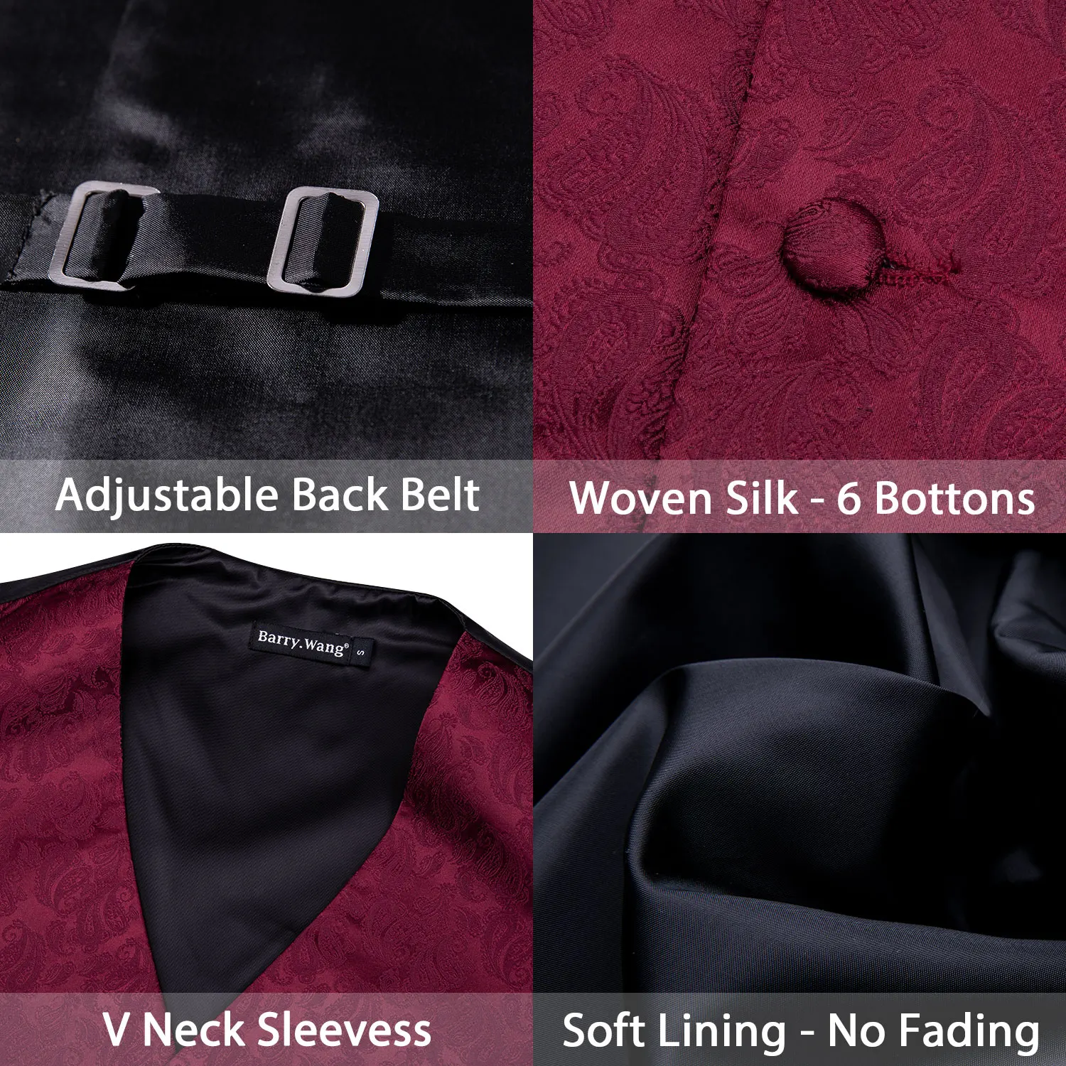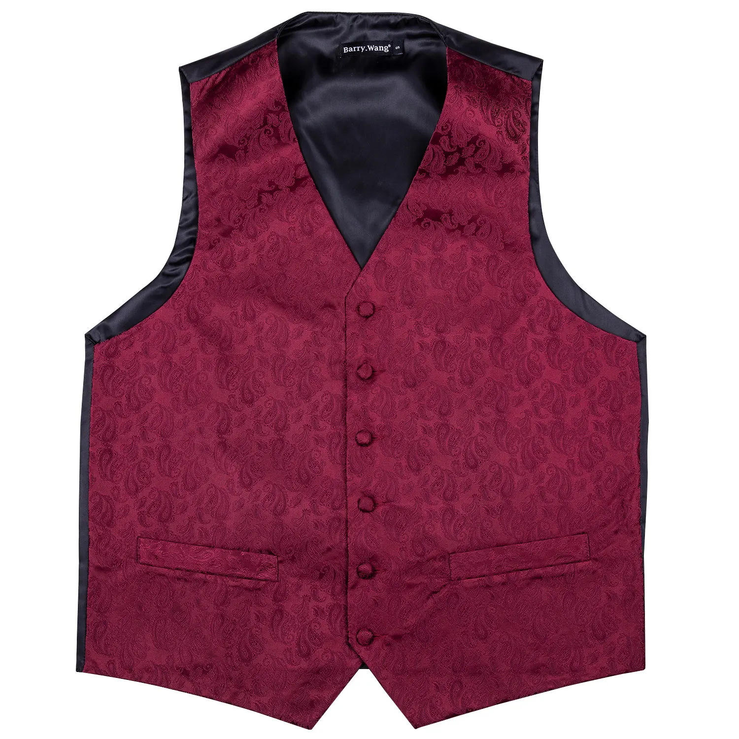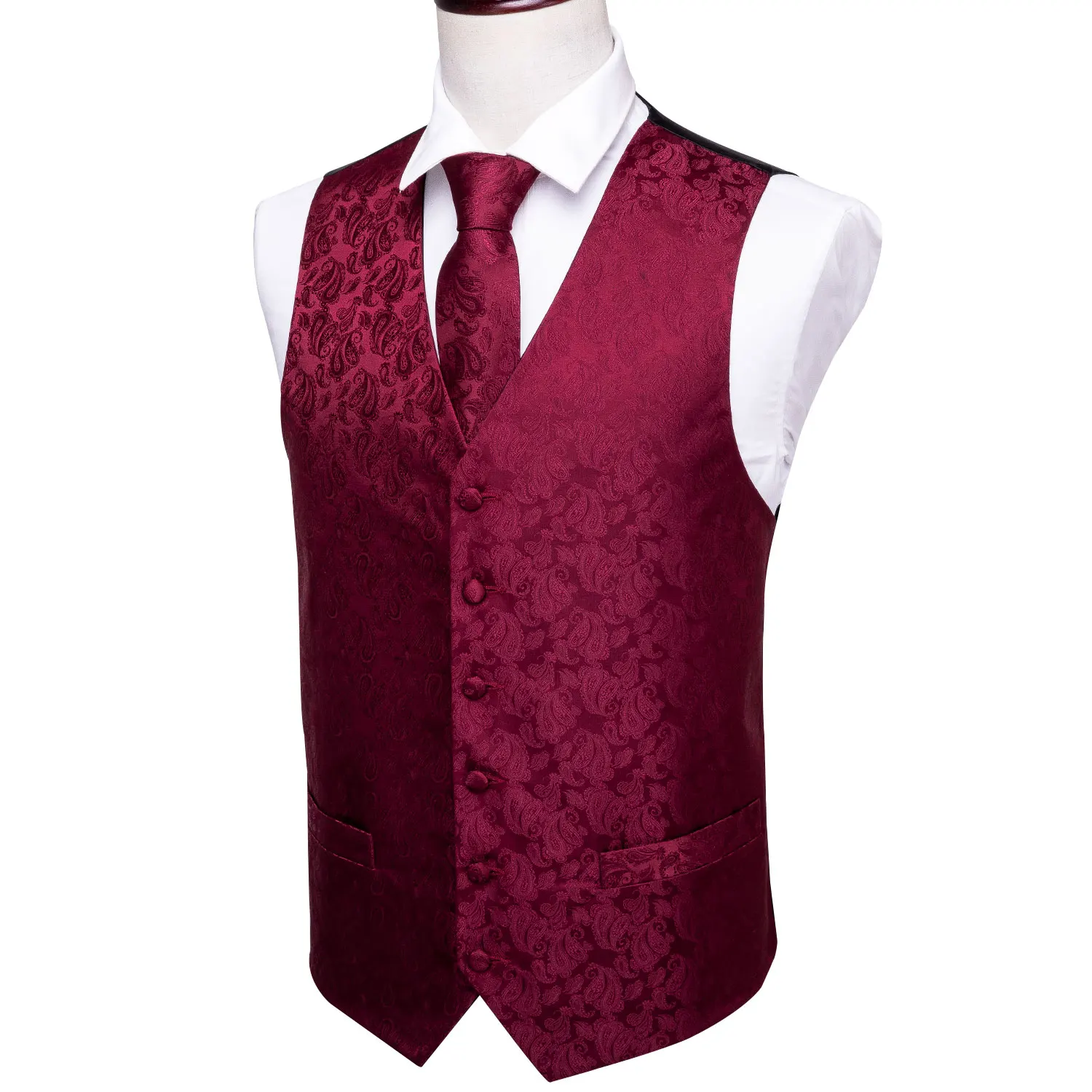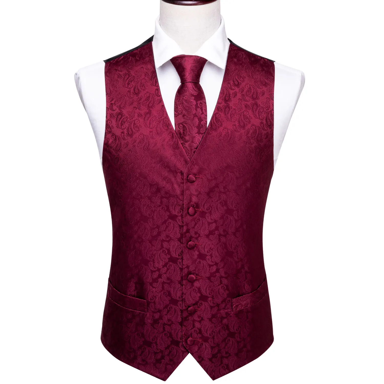 Красный жилет для мужчин, приталенный костюм, жилет с V-образным вырезом, Шелковый комплект с галстуком Пейсли, носовой платок, запонки, галстук для свадьбы, Barry.Wang