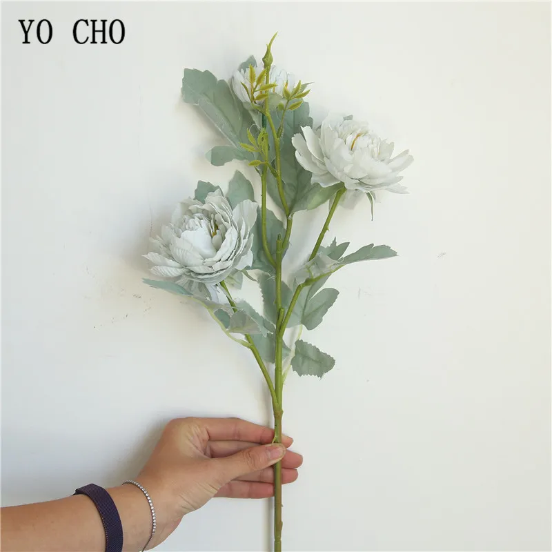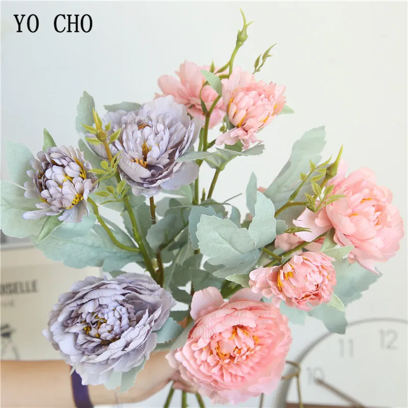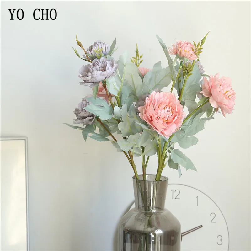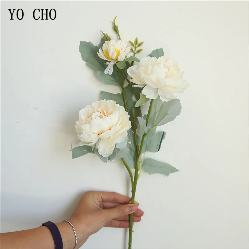 Букет из искусственных пионов YO CHO, 3 головки, искусственные цветы из шелка, розовый, белый, романтическое украшение для дома, свадьбы, Цветочная композиция