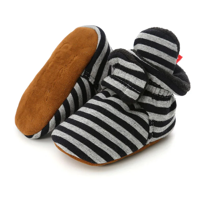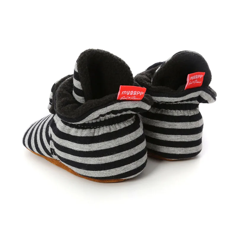 Детские носки обувь для новорожденных мальчиков и девочек в полоску, хлопковые удобные мягкие Нескользящие ботиночки для первых шагов, обувь для детской кроватки