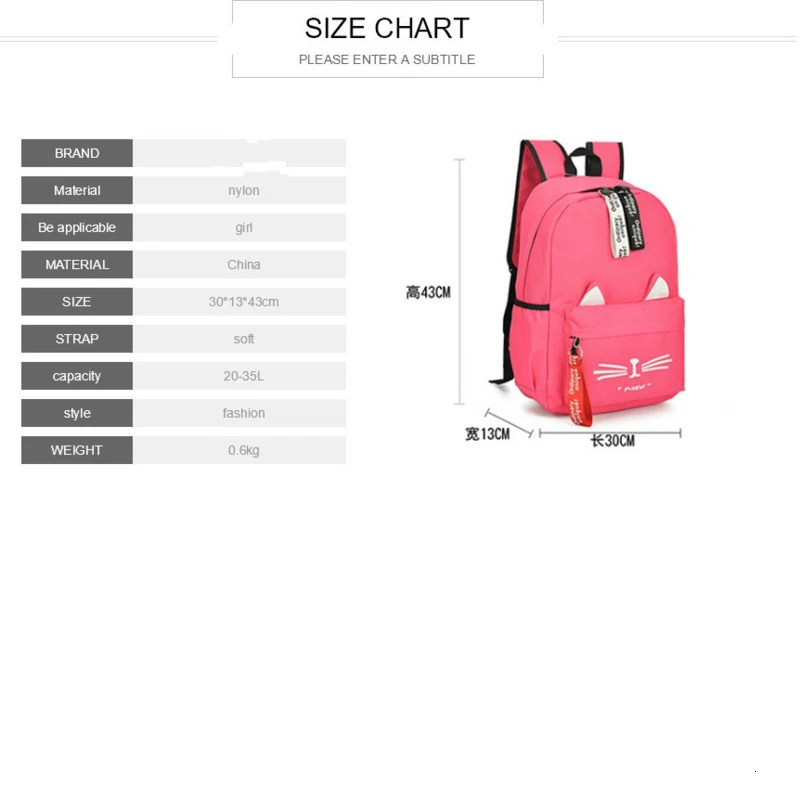 Новинка, рюкзак для девочек на оба плеча, милые кошачьи ушки, студе...