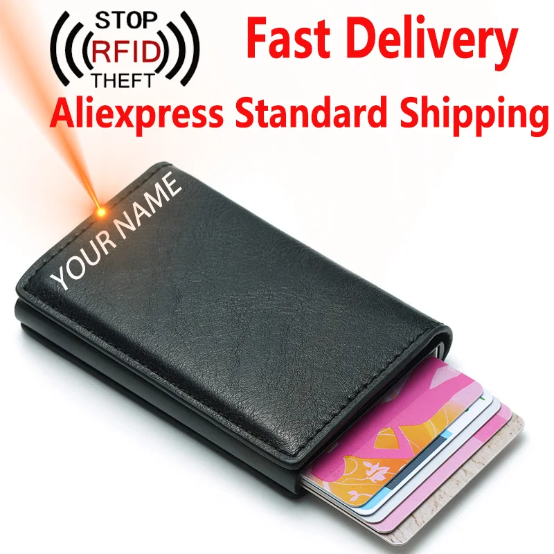RFID блокирующий держатель для кредитных карт, мужские кошельки, Мини автоматический держатель для ID карт, искусственная кожа, сумка для денег, мужской короткий кошелек для бизнеса