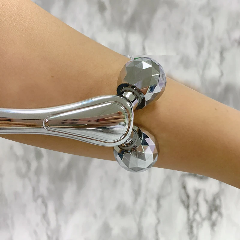 классный массажер,ручка из металла шарики пластик,но это даже лучше,щипает кожу отлично даже больно)))советую однозначно