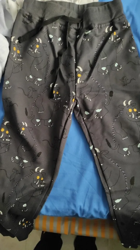 Цельные Тонкие штаны, но цвет немного отличается от изображения. Разумные тонкие хлопковые брюки, хорошее качество, аккуратно сшитые. Штаны gruffelo очень милые, как на картинке.