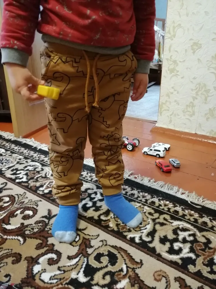 четыре звезды только за то,что не соответствует рост,7т на ребенка 5-6 лет,а так отличные штаны,средней плотности,прикольный рисунок,швы хорошие