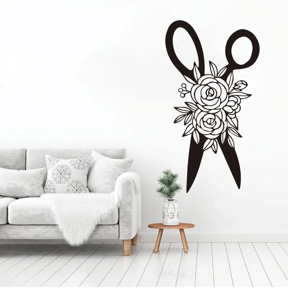 * 1 набор больших ножниц, цветок, крафтер, шитье, стены, Наклейки, швейная комната, парикмахерские ножницы, Парикмахерская, настенные наклейки, виниловый Декор