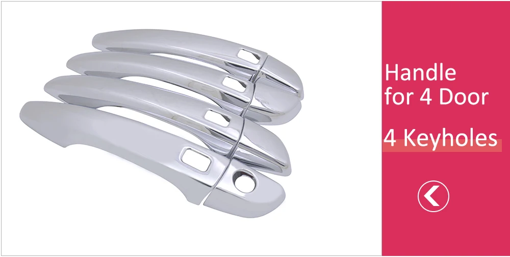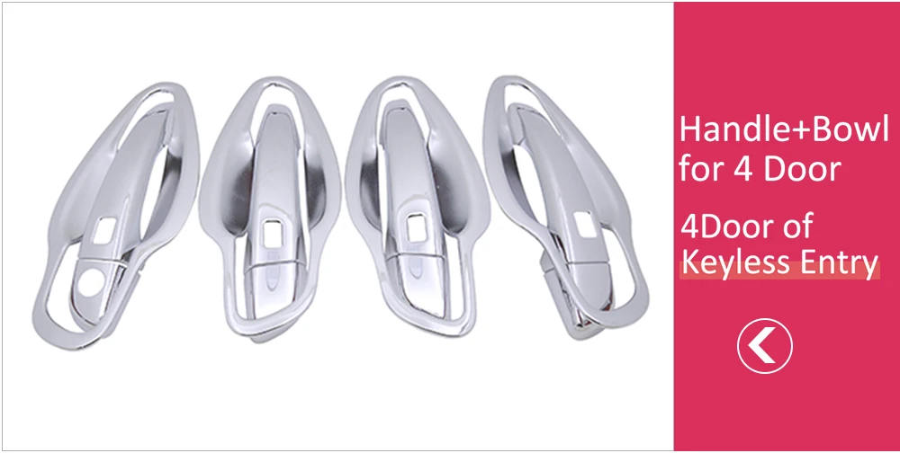 Высококачественная стильная хромированная крышка для дверных ручек для отличной защиты автомобильных дверных ручек. И подчеркнет внешний вид автомобиля. Изготовлен из высококачественного АБС-хромового пластика.