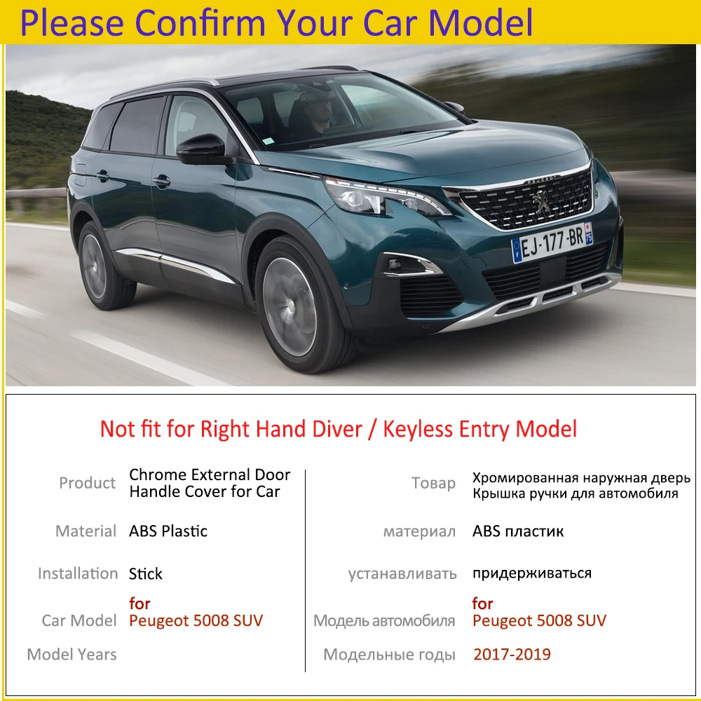 Хромированная накладка на ручки для Peugeot 5008 SUV MK2 2017 2018 2019, автомобильная ручка, аксессуары, наклейки, автостайлинг