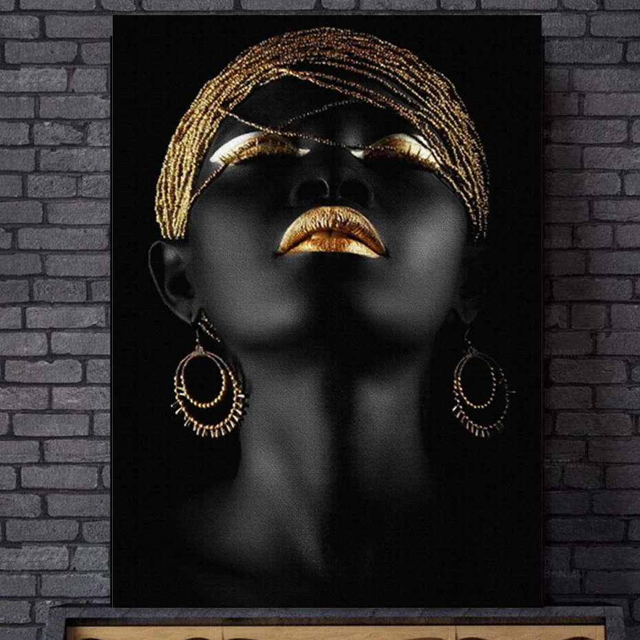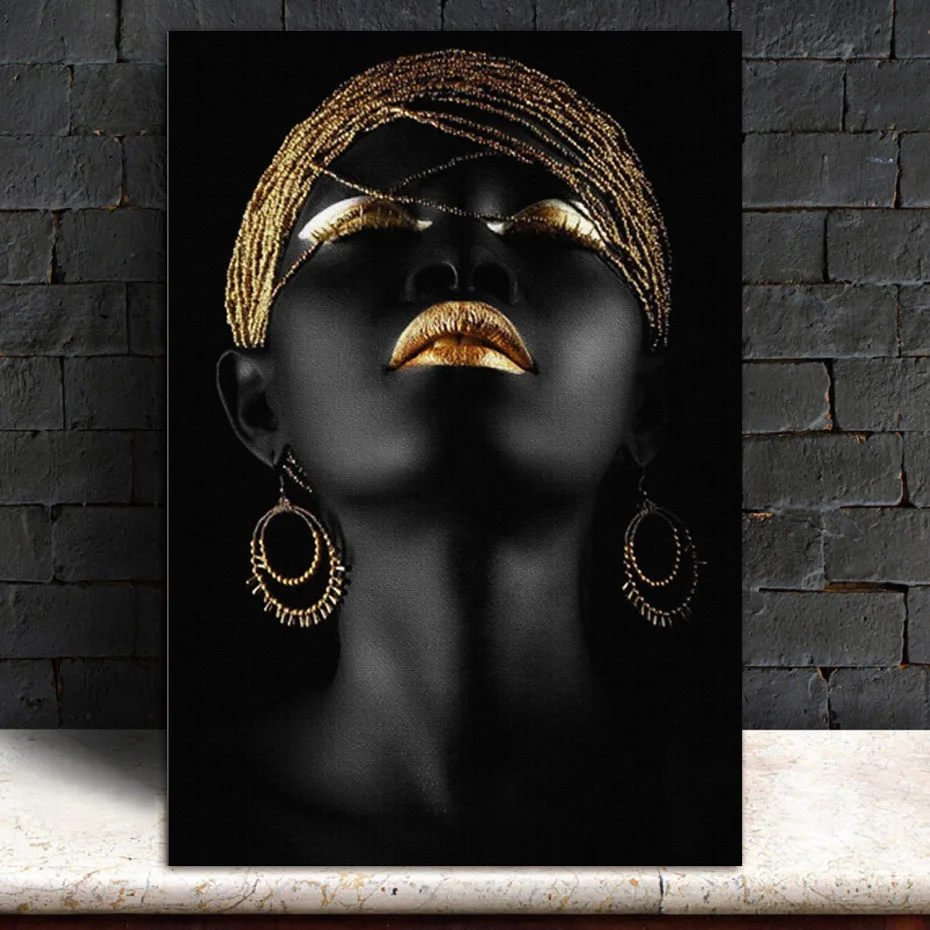 Плакаты и принты на холсте, золотые и черные, Африканская женщина