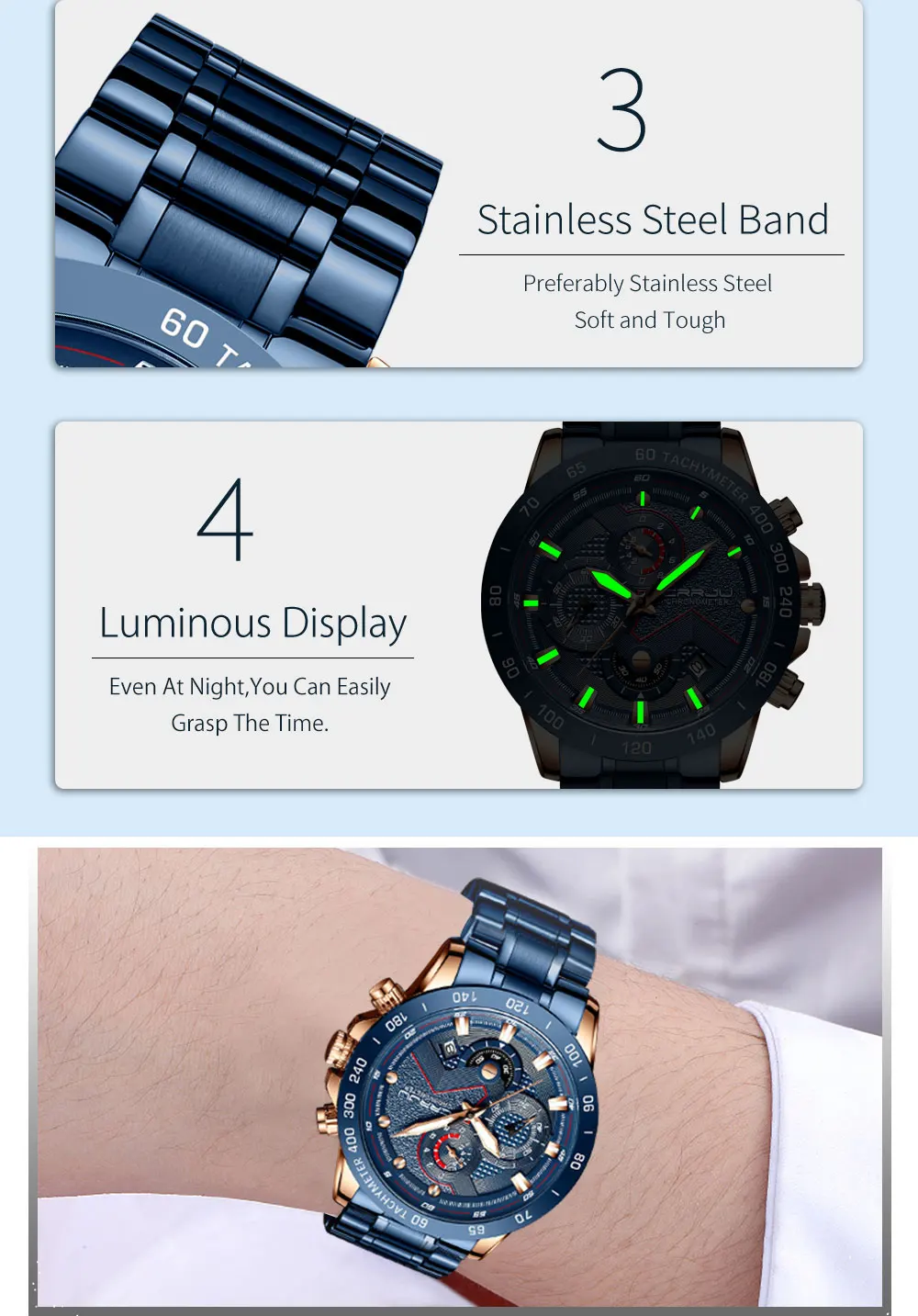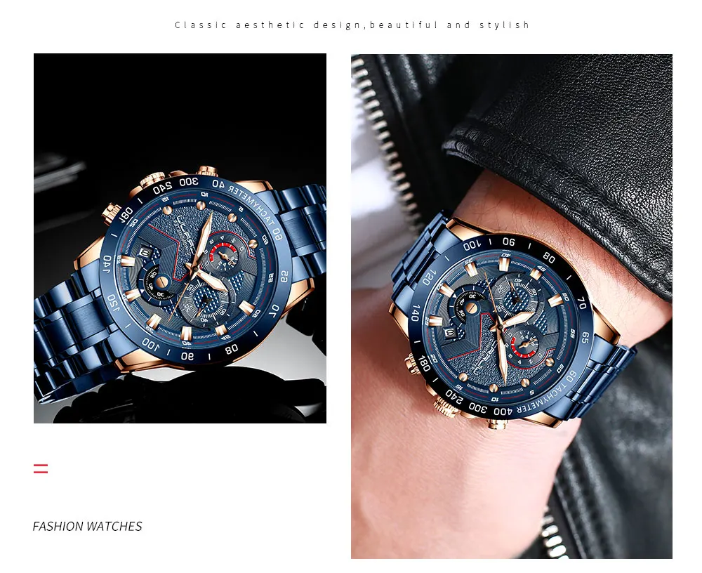 Часы CRRJU мужские наручные кварцевые, Брендовые спортивные роскошные с большим циферблатом, с хронографом, синие