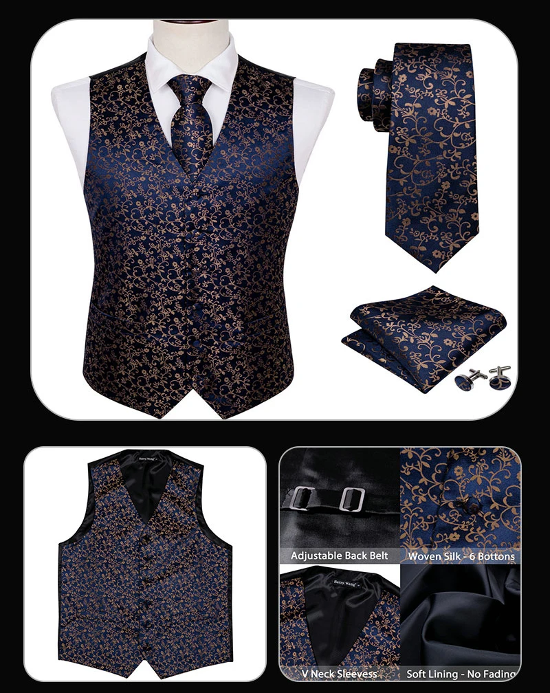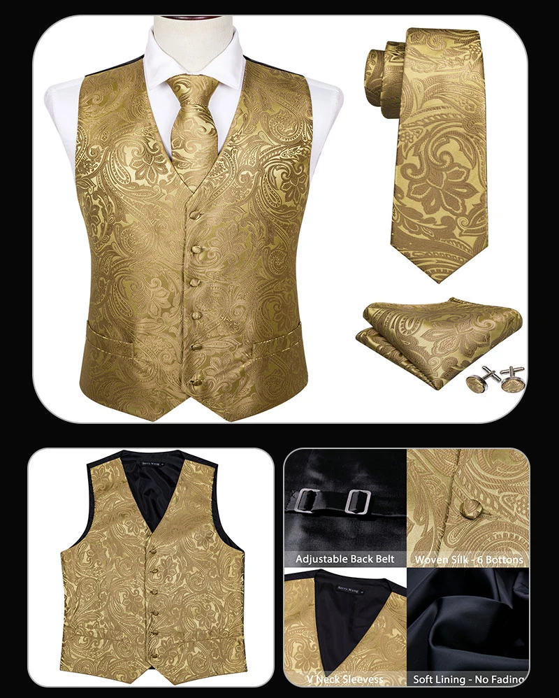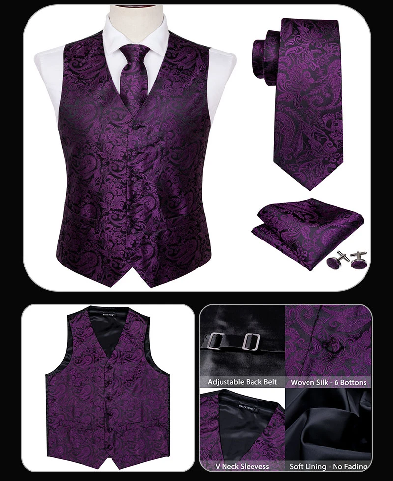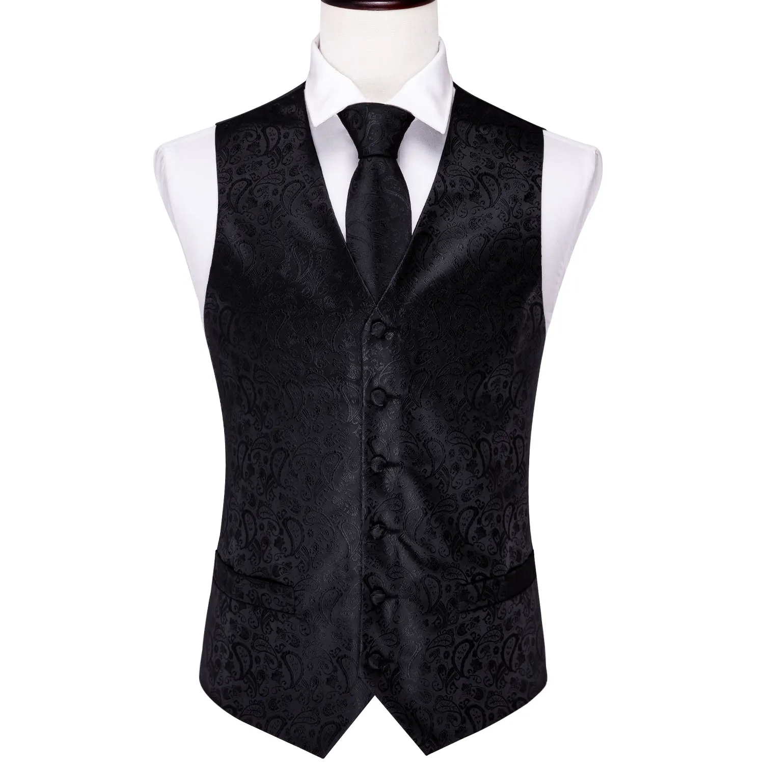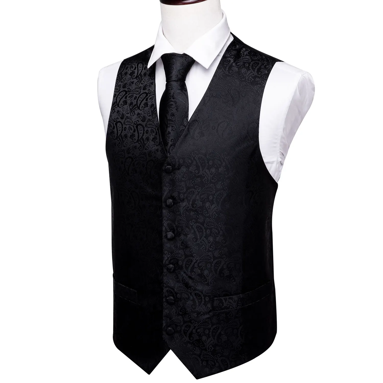 Товар: мужской шелковый жилет с галстукомМатериал: 100% шелкУпаковка: жилет + галстук + карман + ЗапонкиМужской приталенный жилет Barry.Wang, черный Шелковый жилет с принтом пейсли, галстук, запонки, пиджак, жилет для бизнеса