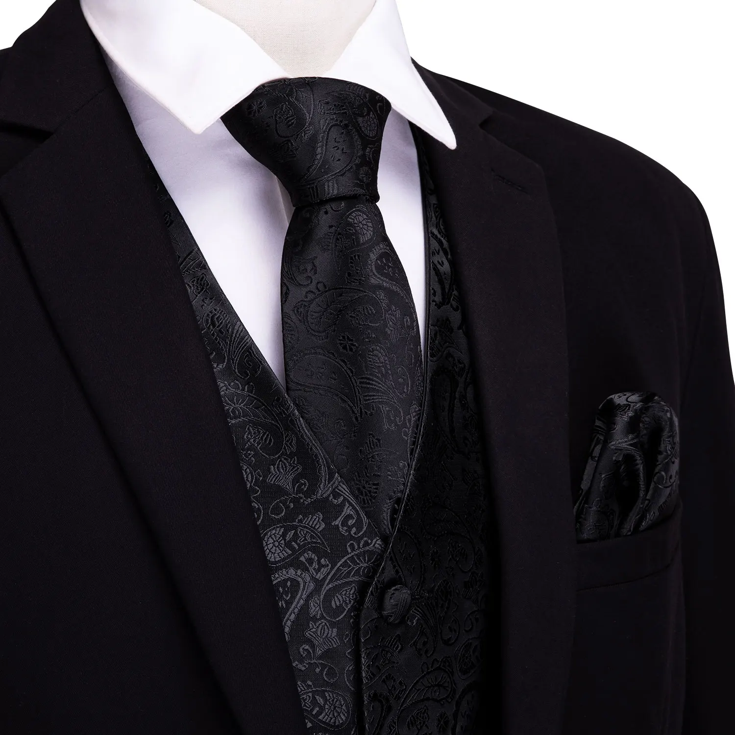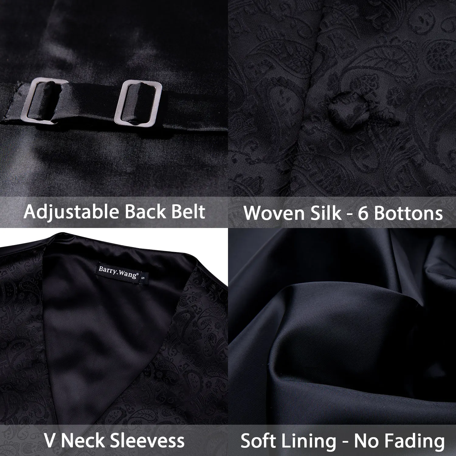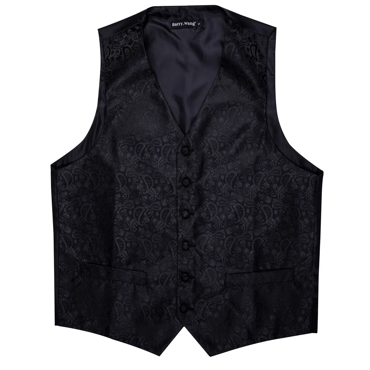 Мужской приталенный жилет Barry.Wang, черный Шелковый жилет с принтом пейсли, комплект с платком и запонками, пиджак, жилет для бизнеса