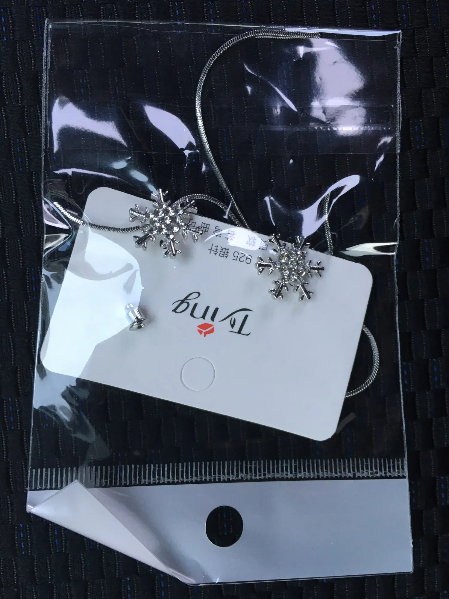 соответствует описанию. неплохие снежинки, но достаточно крупные - почти 2 см в диаметре. два вида застёжек в комплекте. но было упаковано плохо - погнулись ножки гвоздиков. доставка до Беларуси как всегда долгая. но главное что пришло)