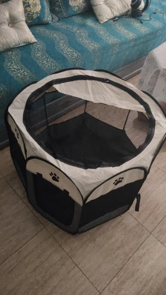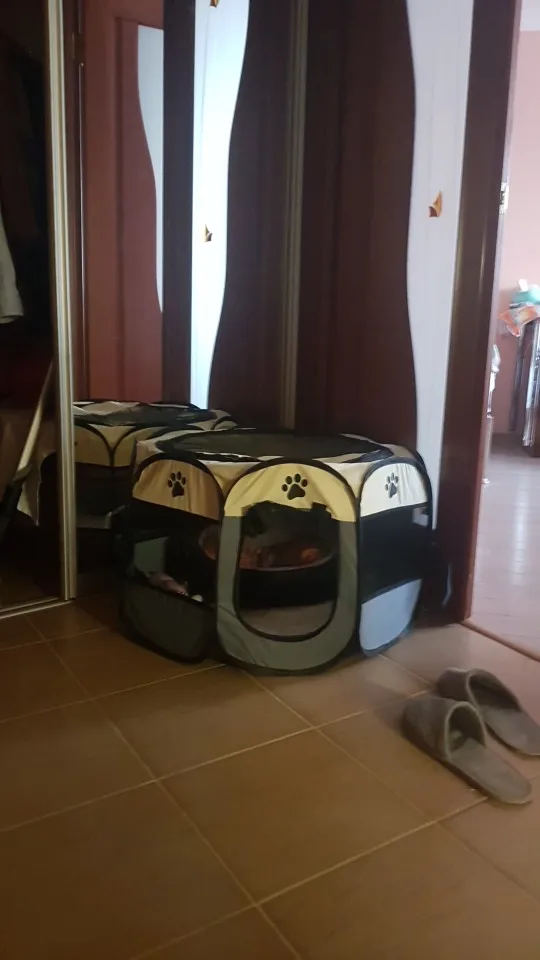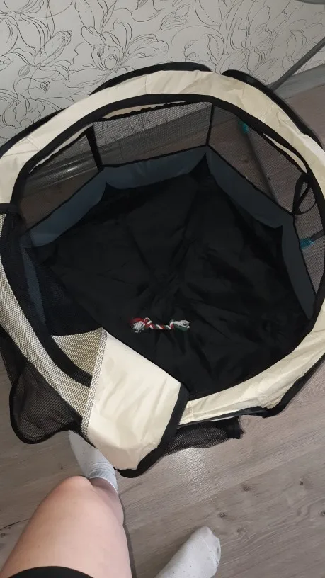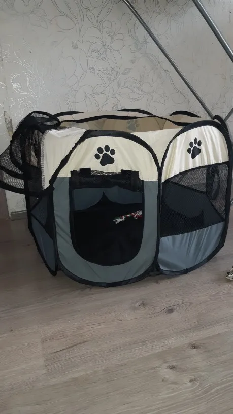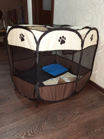 Приобретением довольны полностью. Очень мобильная и удобная вещь. Наша собака оценила, но хватило нам вольера не на долго, так как наш пёсик быстро вырос, но несмотря на это будем пользоваться обязательно ещё. Удобно брать с собой (если нужно пару ночей провести с собакой вне дома), но не на постоянку. Миску, лежанку, пелёнку в себя вмещает хорошо, если собачка маленькая.