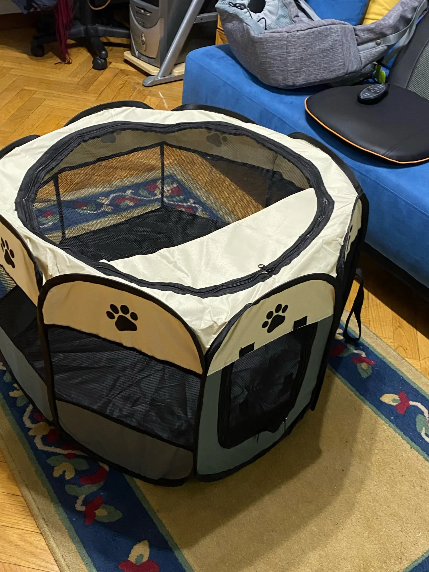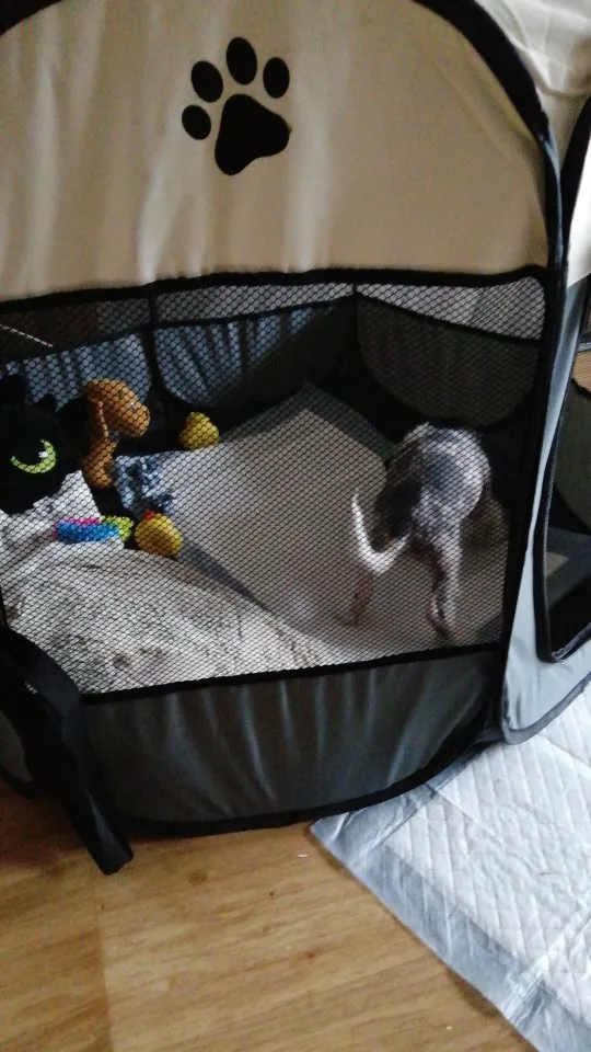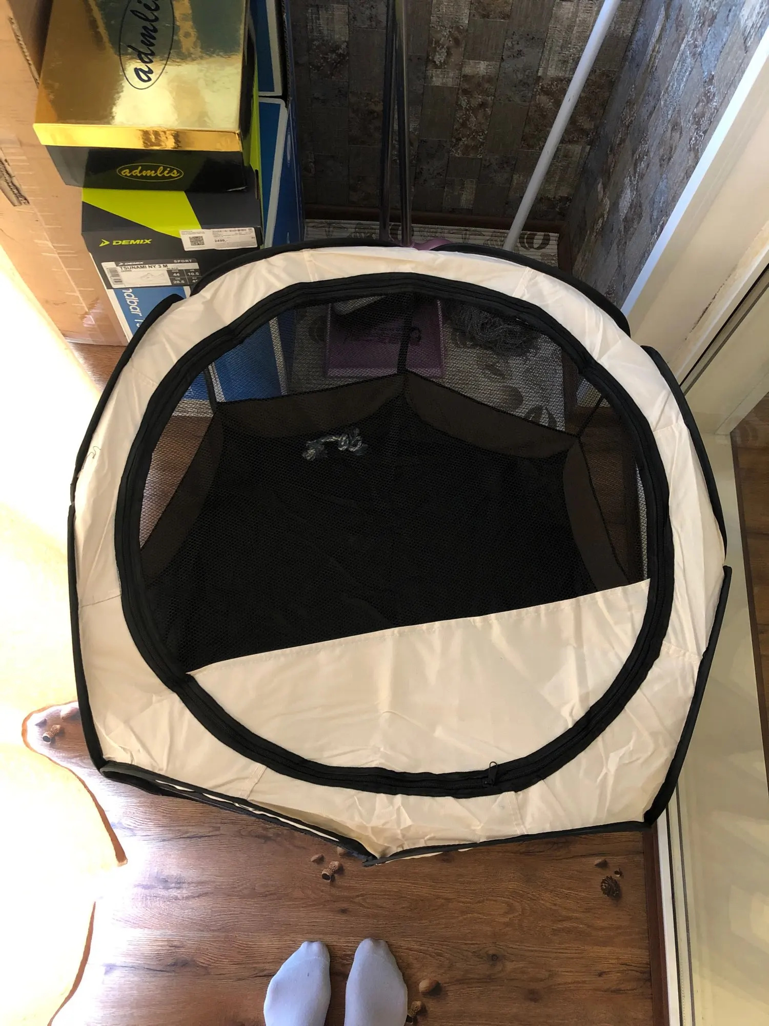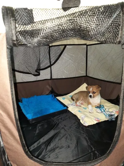 Потрясающее качество! Легко надевать и снимать. Очень компактный при хранении или перемещении. Мы получили 91X91 и его отличную площадь для наших 2,5 фунта Мальтийского