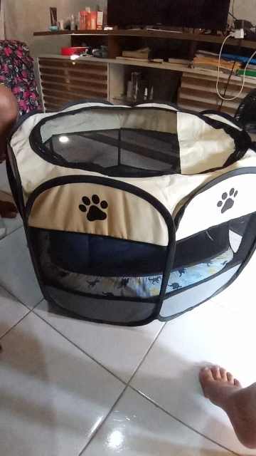 Продукт в порядке, но он складывается только внутрь, когда он легко открывается. С спокойными животными проблем нет, но если это неспокойный животное, это будет. Быстрая доставка и очень хорошая цена по сравнению с другими равными.