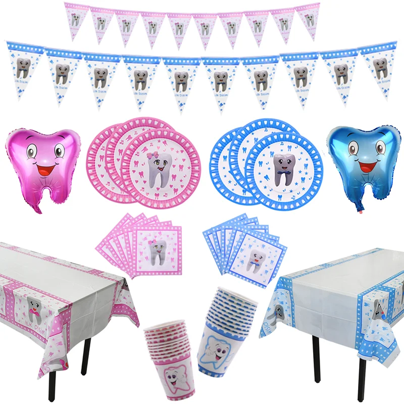 Милая тематическая вечеривечерние для будущей мамы с зубами, украшение, розовые синие бумажные тарелки, чашка, посуда, баннер, фольгированный шар, Детские принадлежности для дня рождения вечерние ринки