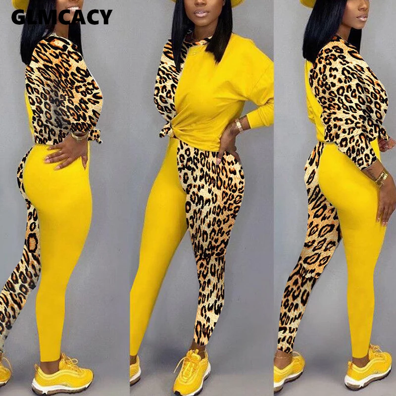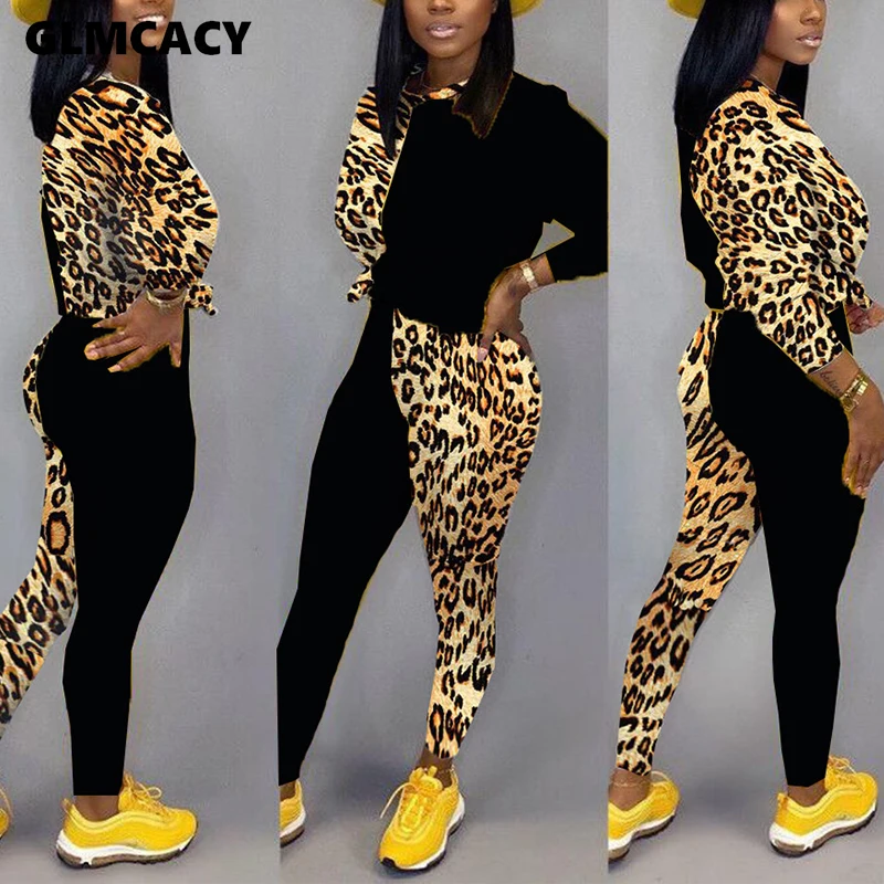 Женские леопардовые Лоскутные комплекты, осенне-зимний свитер, пуловер, костюмы, женская одежда, два предмета, спортивные костюмы, повседневные комплекты, комплект из 2 предметов