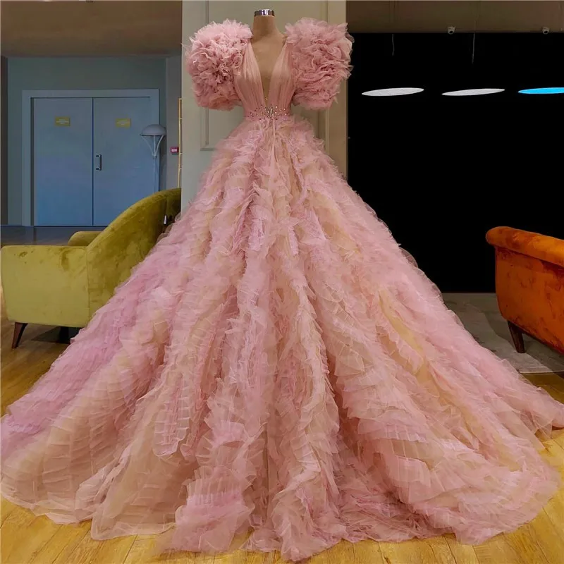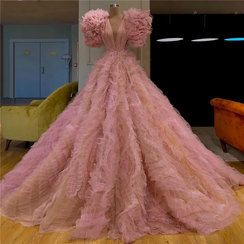 Пышное Тюлевое платье для выпускного вечера, с бусинами и блестками, с V-образным вырезом