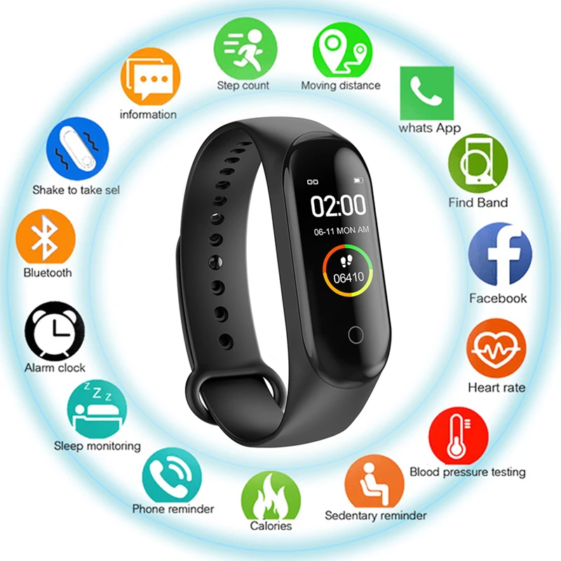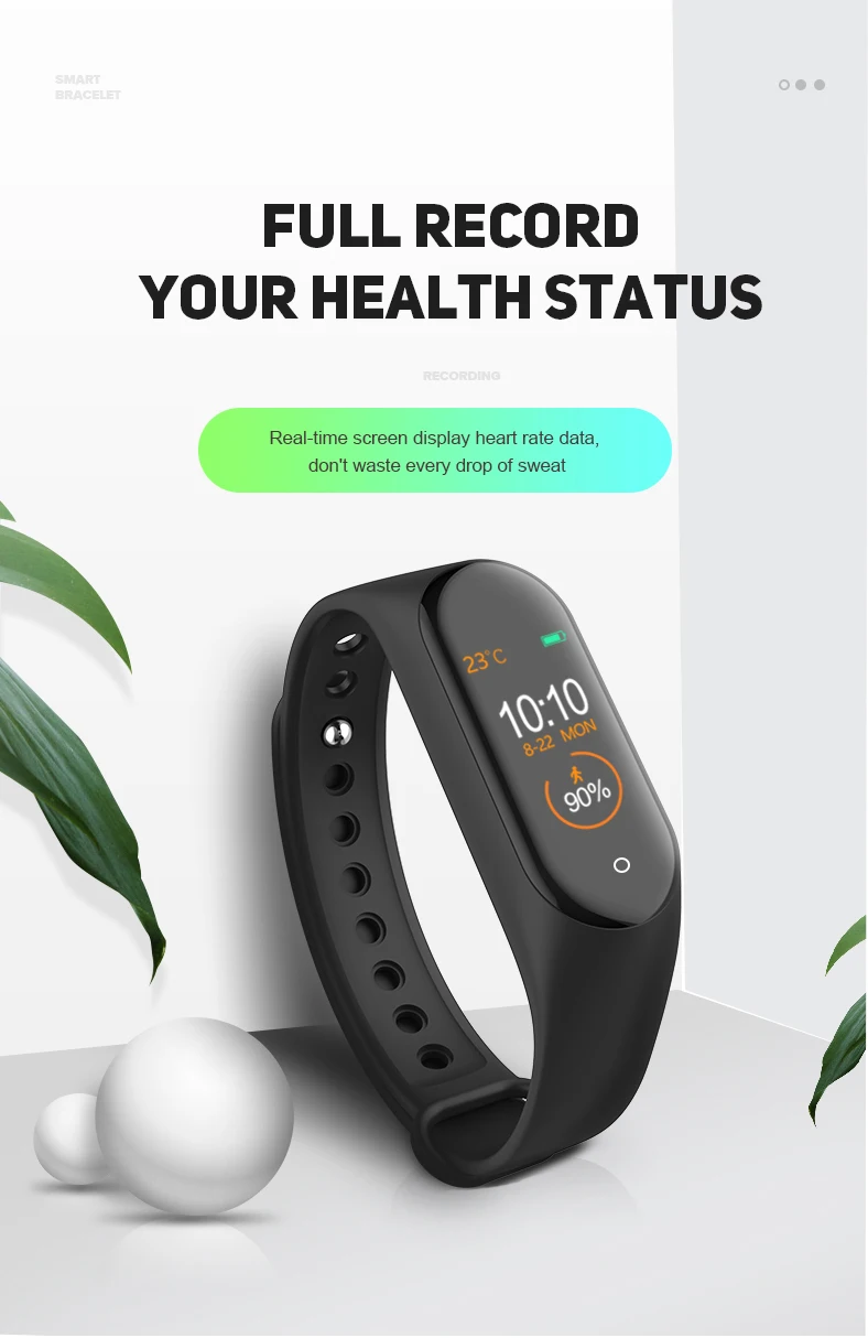 Умный Фитнес-браслет M4, спортивный браслет с шагомером, пульсометром, артериальным давлением, Bluetooth, контролем здоровья и сна, водонепроницаемый смарт-браслет