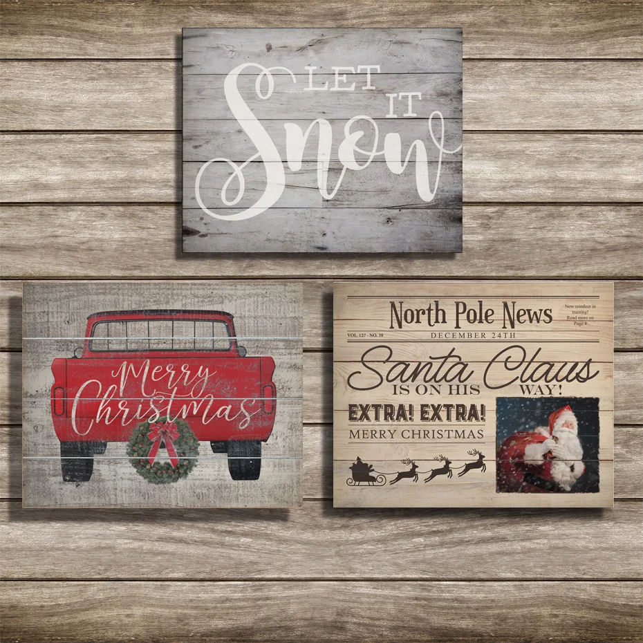 Винтажные рождественские плакаты с Санта-Клаусом, мультяшный автомобиль, снег, настенные картины на холсте, праздничные декоративные принты, картины, домашний декор