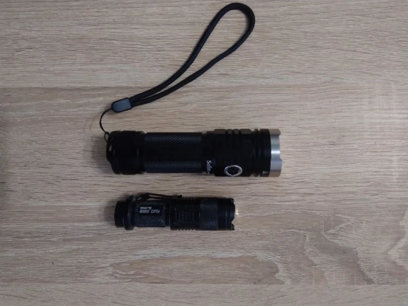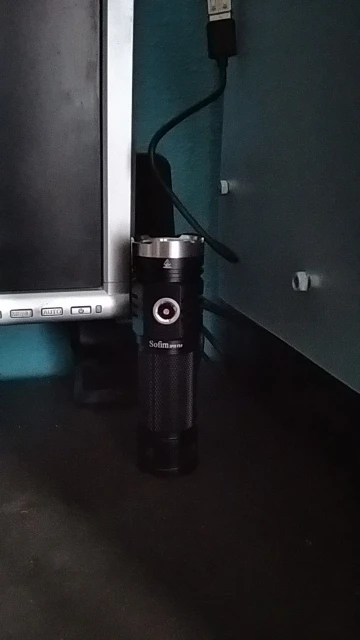 Фонарик отличный, третьего режима вполне хватает светить под ноги, на четвертом можно освещать комнату если направить в потолок. Зарядка через встроенный usb, кабель в комплекте. Продавец положил чехол в подарок за что ему плюс. На фото для сравнения с фонариком на акуме 14500. Из минусов - доставка полный пи...ц, больше двух месяцев через Meest Group.