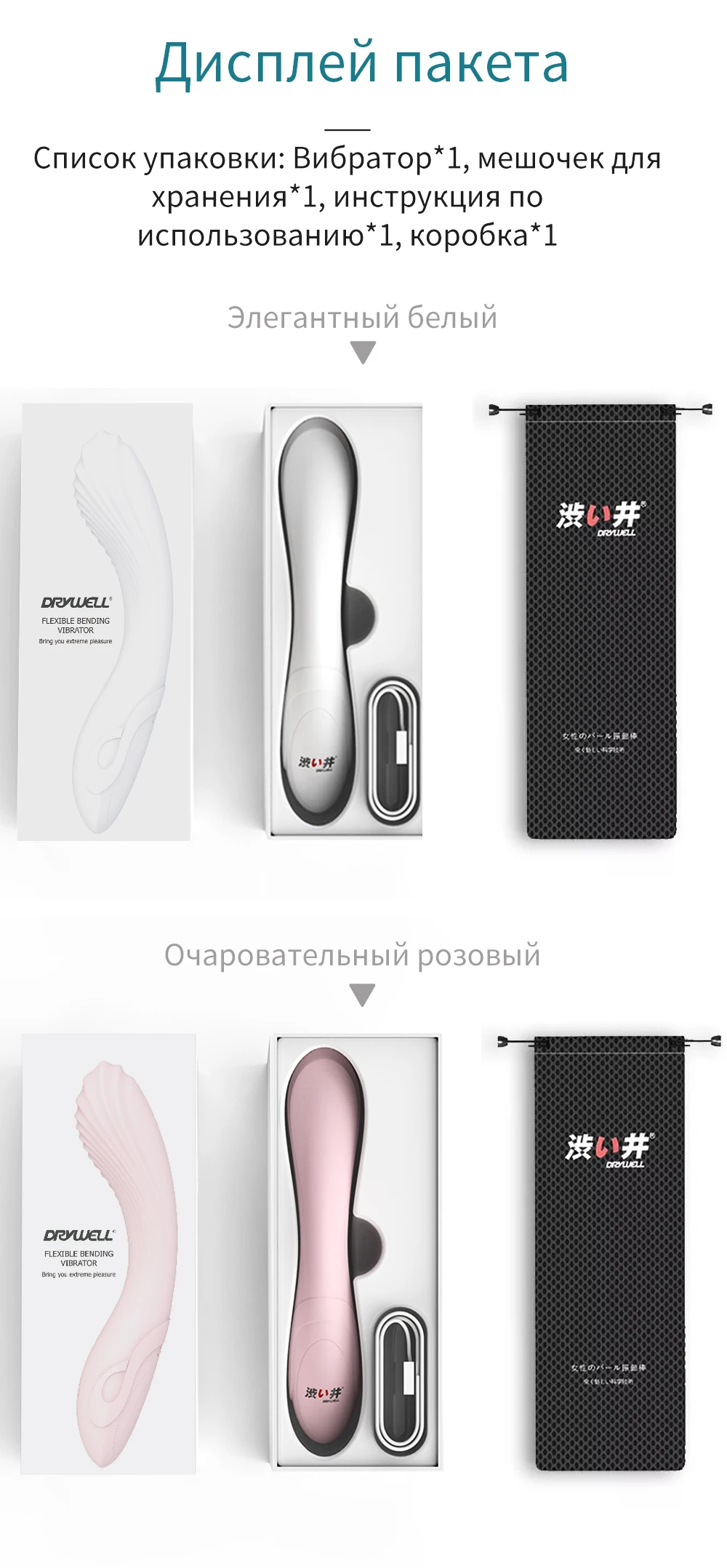 Хороший товар! Бархатистая поверхность, гнется,выглядит качественно,стильно и дорого!Коробка упакована в слюду,внутри мешочек для хранения тоже в отдельном пакетике,шнур,мини-инструкция. Заказывала со смазкой,она тоже в заводской упаковкеЗаряжается быстро. Вибрация приличная. Не очень тихий,но и не особо громкий. Советую к приобретению