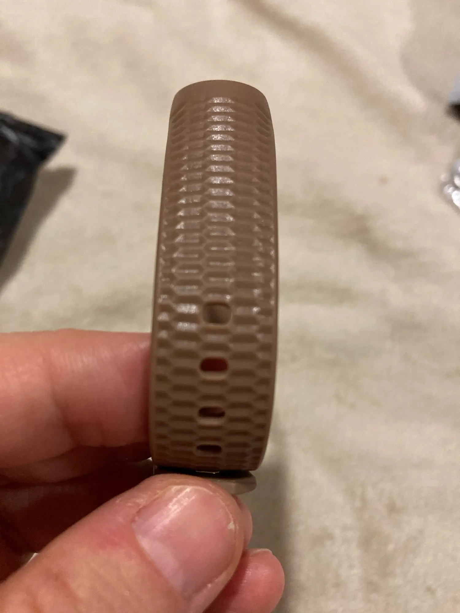 В реале выглядит конечно очень дёшево, у меня был намного более качественный не намного дороже. Он плотно облегает саму капсулу, натягивается, думаю не надолго, растянется. В общем, за эти деньги можно брать. Цвет как на картинке, грани по всему браслету, оригинально. Доставка мега долгая... 3 месяца до Воронежа, кинули в ящик.