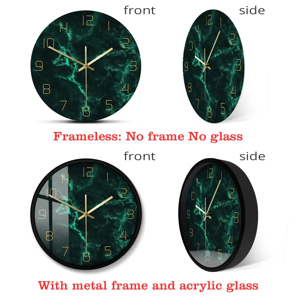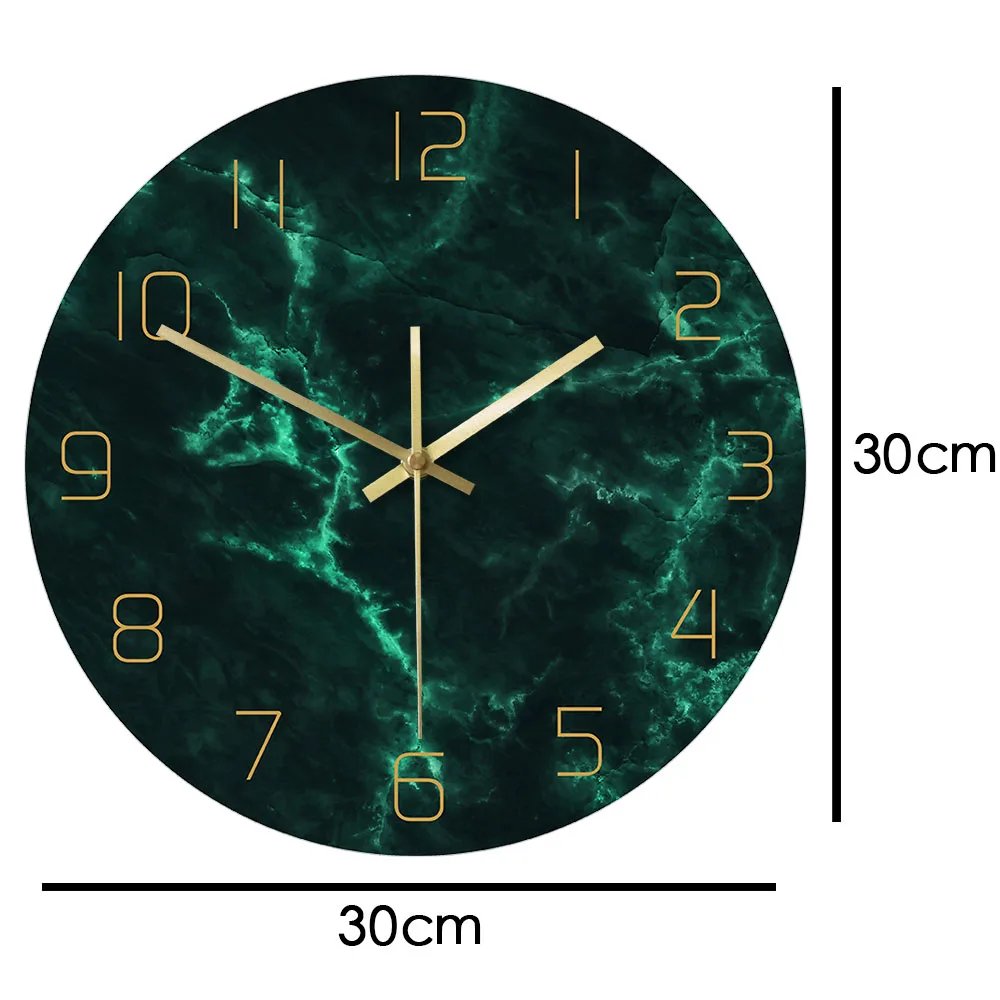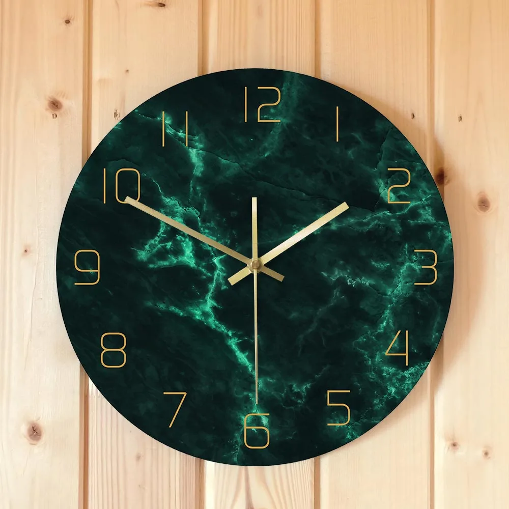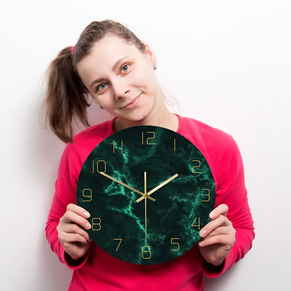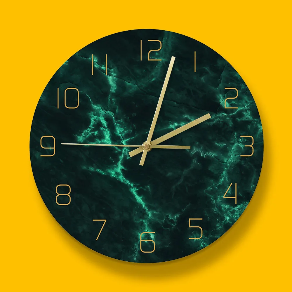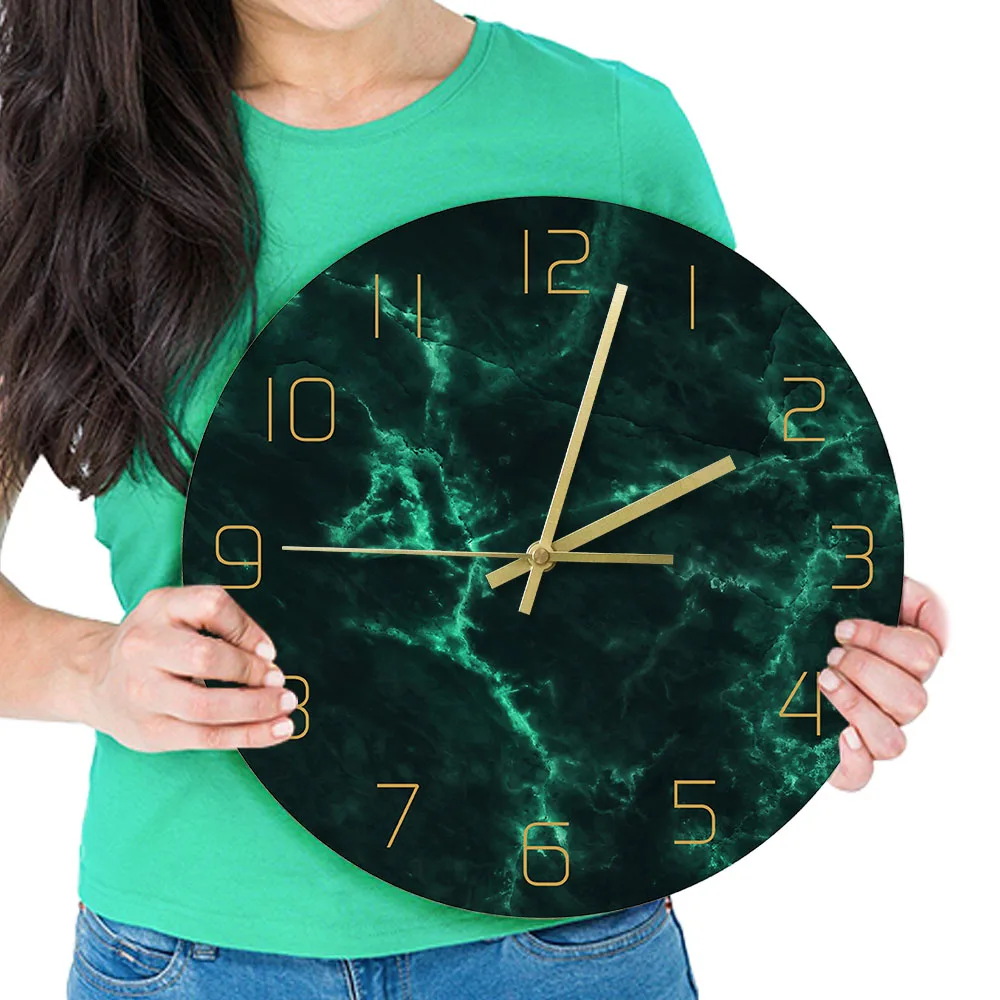 Настенные часы, зеленые декоративные круглые часы в скандинавском стиле с мраморным рисунком для гостиной, минималистичное искусство, домашний декор