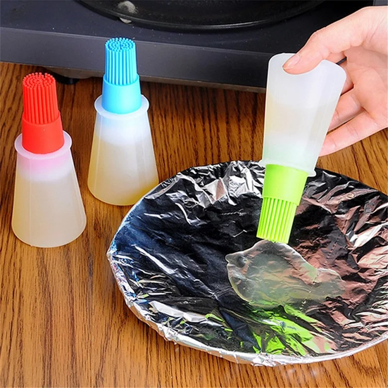 1 шт., портативная силиконовая бутылка для масла с щеточкой