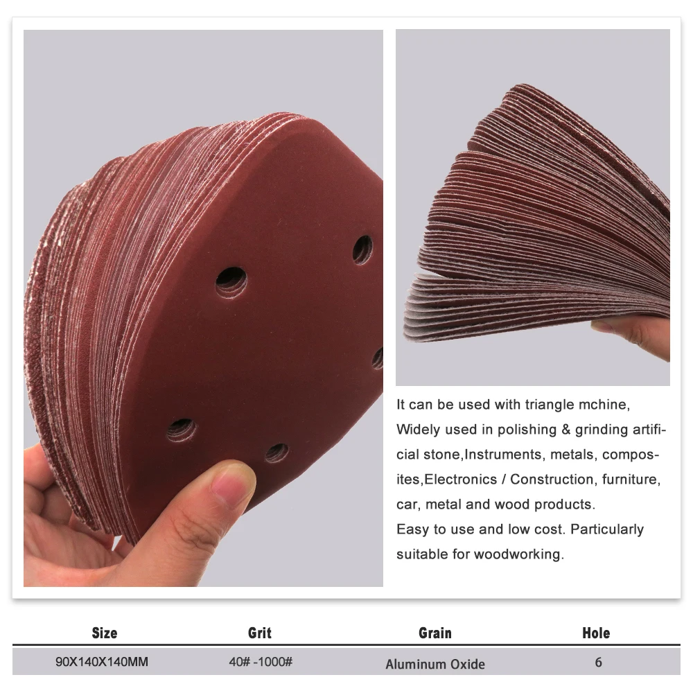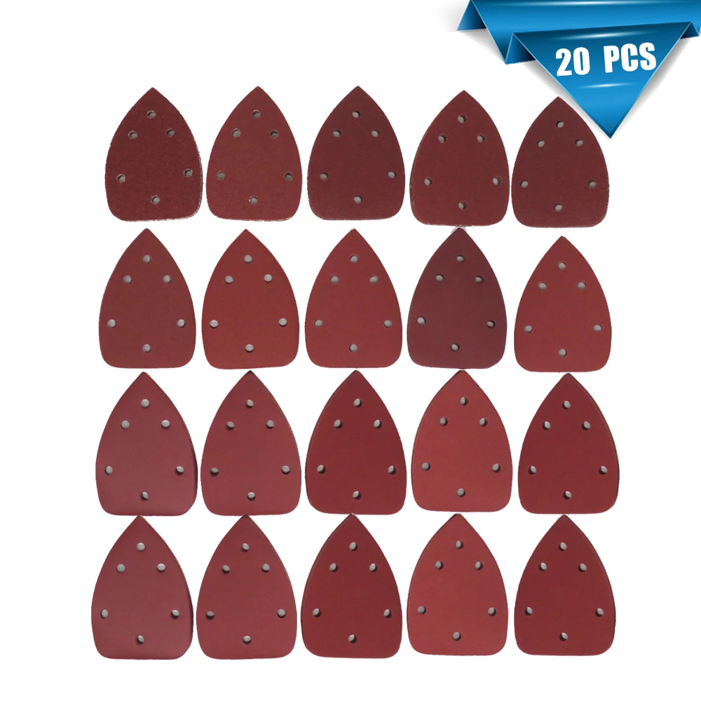 140*90 * мм 6 отверстий, шлифовальные листы, треугольная красная наждачная бумага, крючок и петля, 40 -1000 Grits, абразивный шлифовальный диск для дерева, шлифование (20 шт.)