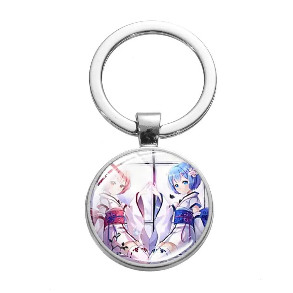 SONGDA Re Zero Начальная жизнь в другом мире брелок ОЗУ Рем Эмилия мультяшный узор ручная работа стеклянный драгоценный камень брелок для ключей сувенир