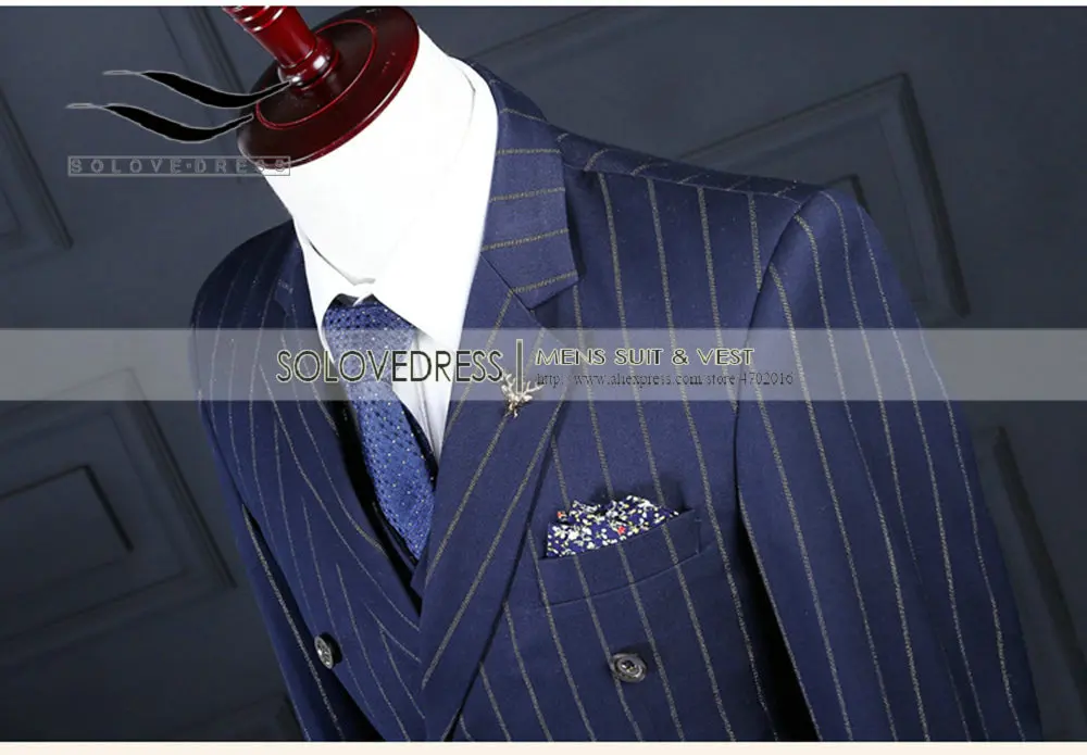 Мужские облегающие костюмы VEIAI, темно-синие двухбортные смокинги ...