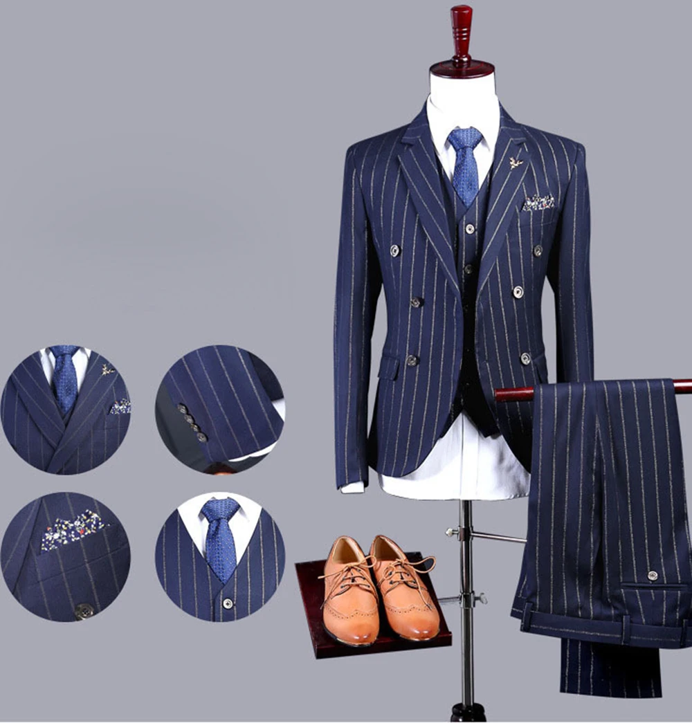 Классические Полосатые мужские облегающие костюмы, двубортные сваде...