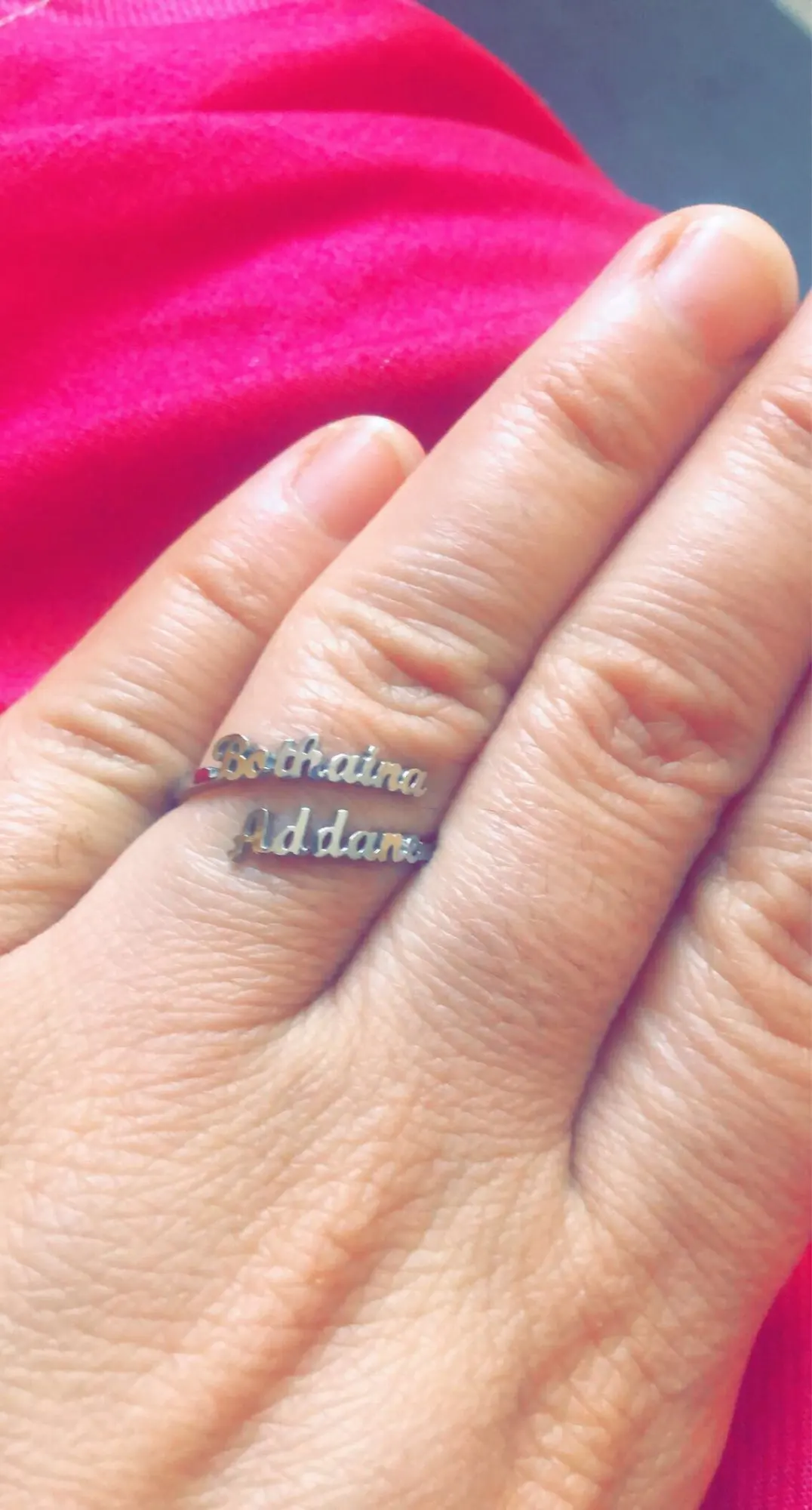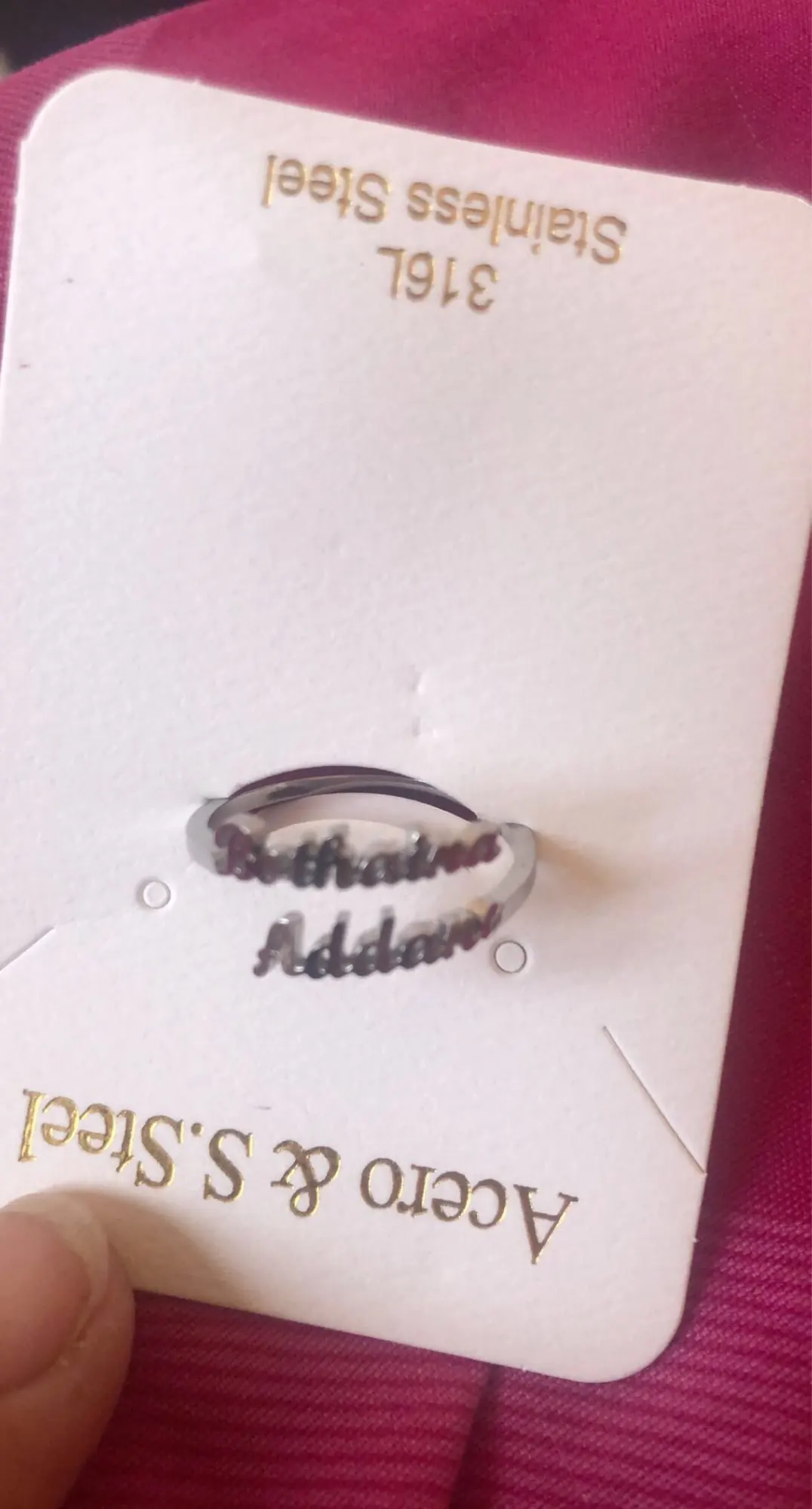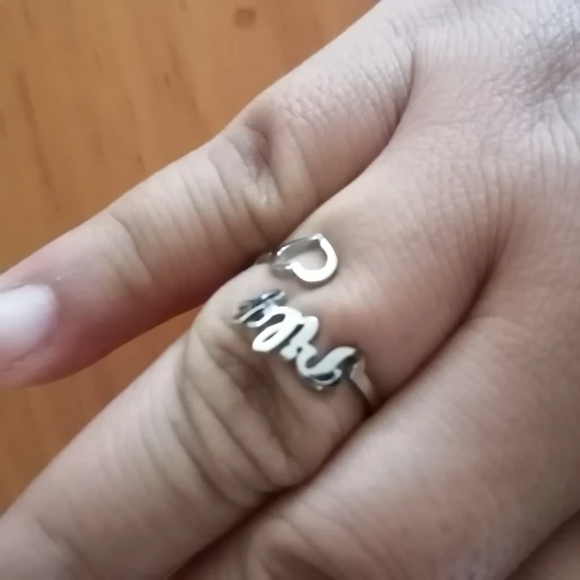 хорошее колечко, исполнение аккуратное, пока что блестит, как в будущем поведёт себя - посмотрим. смотрится очень оригинально. продавец просто супер, я попросила прислать вармант имени двумя понравившимися шрифтами, он ответил быстро, я выбрала, и вот результат)))) т.ч. пишите смело, будет вам любой каприз в пределах дозволенного))))) отправил довольно быстро, учитывая изготовление, а долетело вообще мгновенно))))) итог - удовольствие и индивидуальность!!!!!!