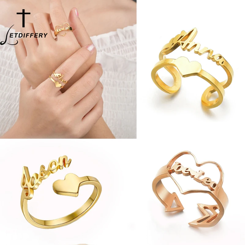 Letdiffery персонализированное имя и Дата кольца из нержавеющей стали сердце Корона персонализированное кольцо для пары женщин DIY Ювелирные изделия рождественские подарки