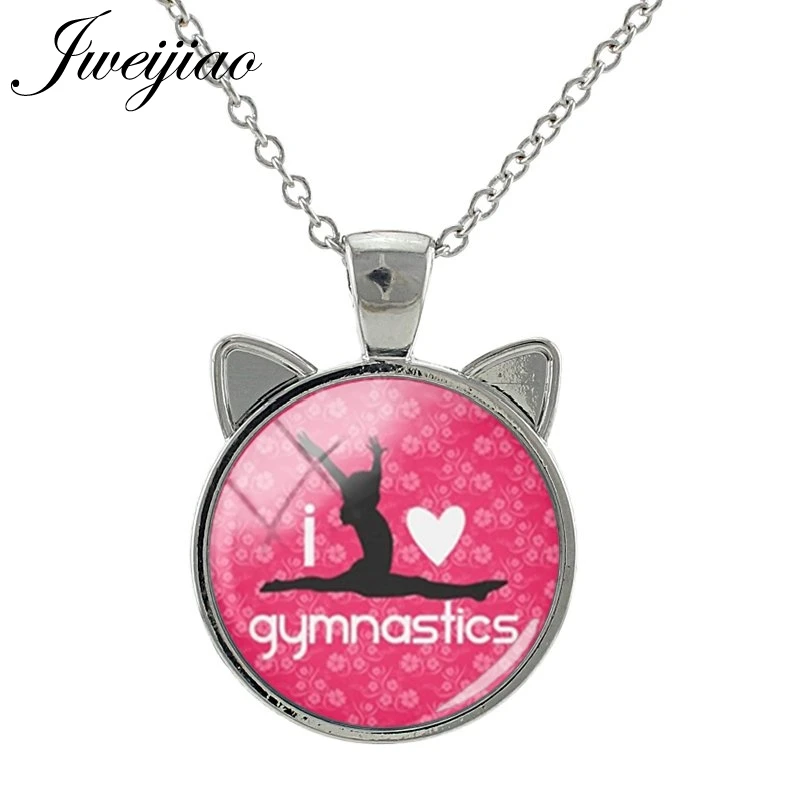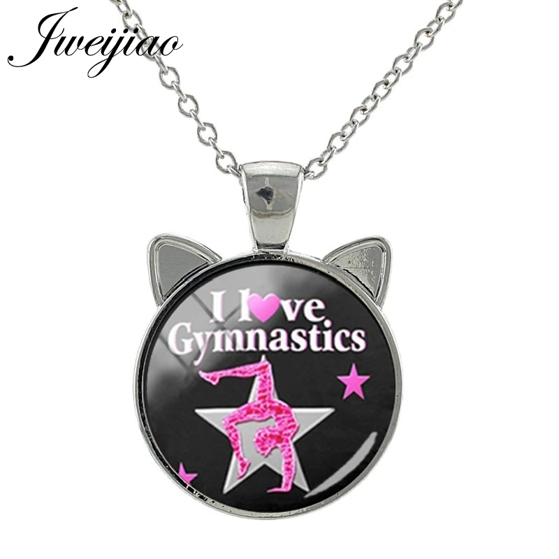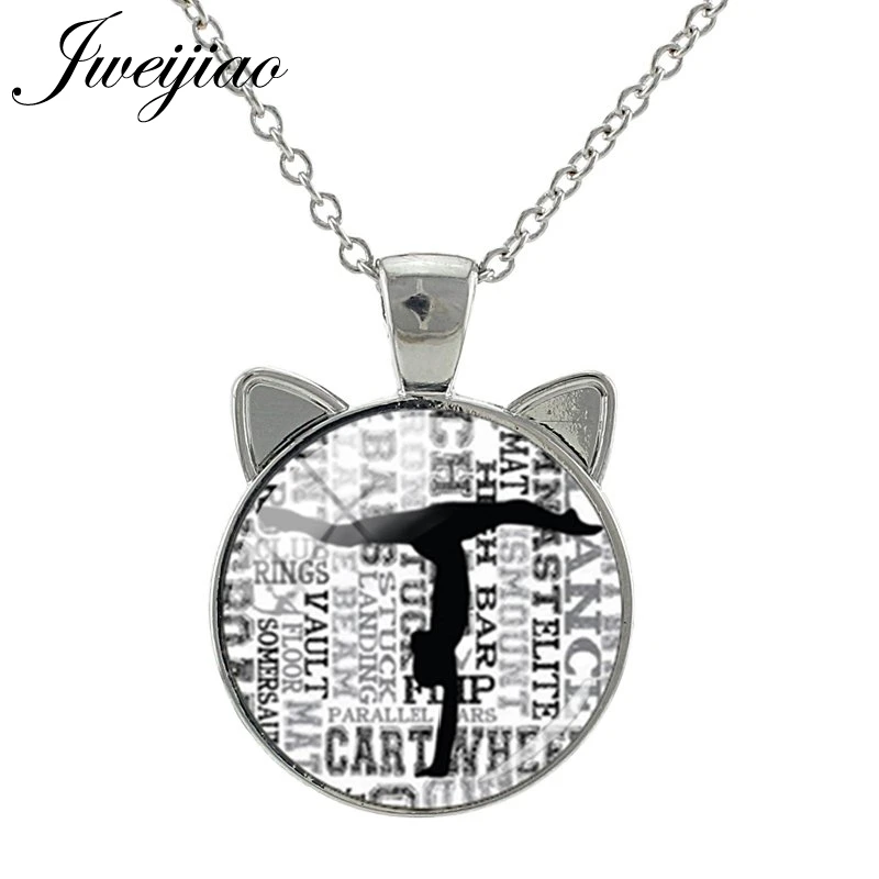 Ожерелье JWEIJIAO цветное с длинной цепочкой, фигуркой гимнастки, ожерелье с кошачьими ушками, стеклянный кабошон, подвеска, ювелирные изделия NS558 2-25