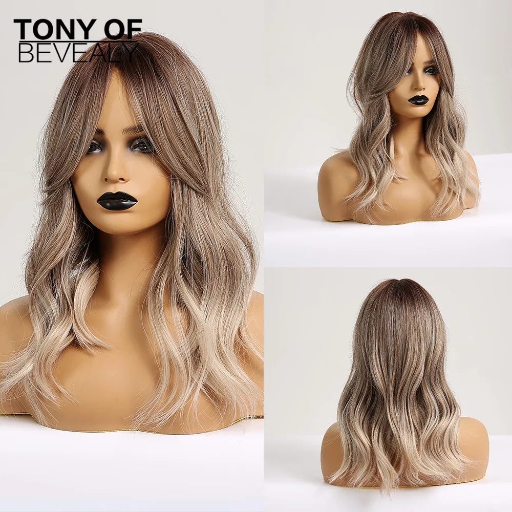 Длинные волнистые пепельные блонд многослойный парик с челкой термостойкие синтетические парики для афро женщин ежедневные Косплей натуральные волосы парики