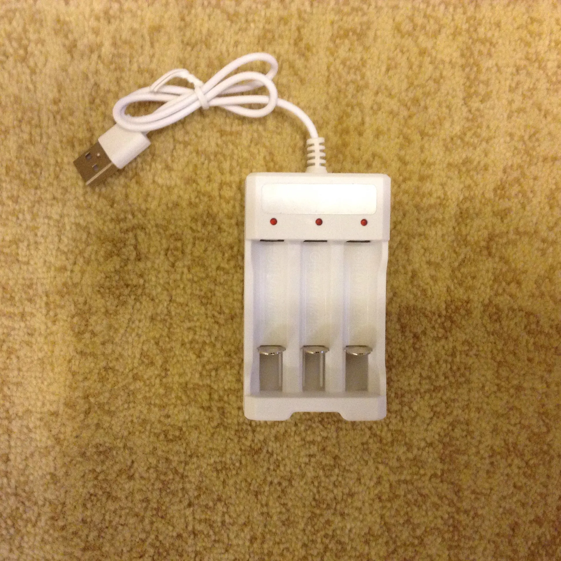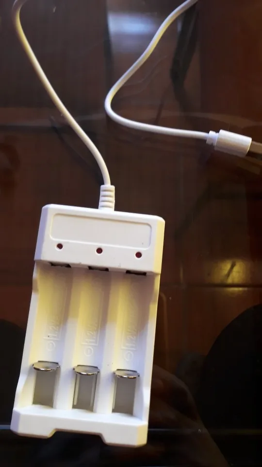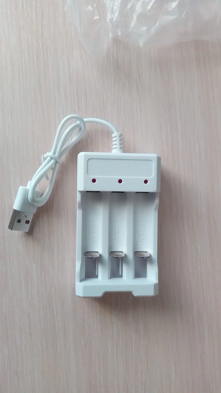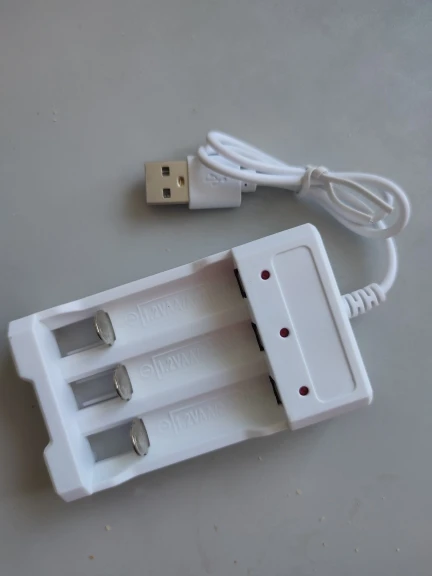 Быстрая доставка до Татарстана 2недели, пришло в большой упаковке вместе с другими заказами, всё соответствует описанию, аккумуляторы заряжает, но по одному не заряжает, надо ставить все 3 штуки, иначе не будет зарядки