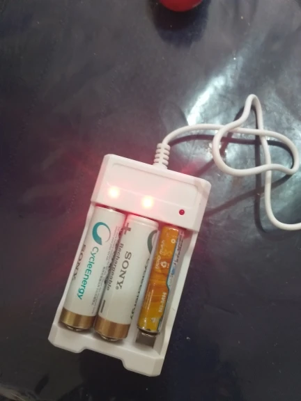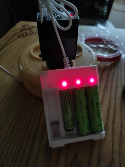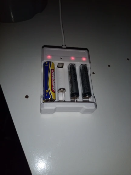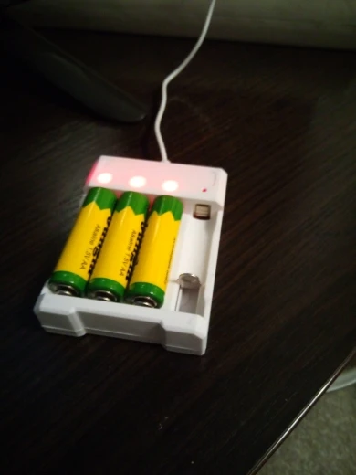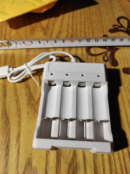 Зарядка удобная. Зарядок для телефонов скопилось много. Поставил один аккумулятор, зарядился он довольно быстро и зажегся светодиод. Занимает мало места. Спасибо продавцу.