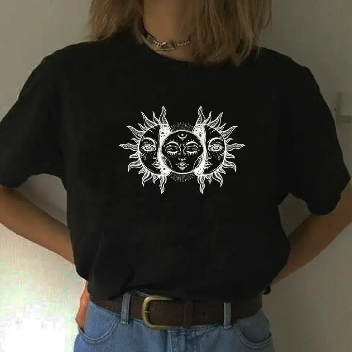 Винтажная модная женская футболка VIP HJN с принтом солнца, луны, з...