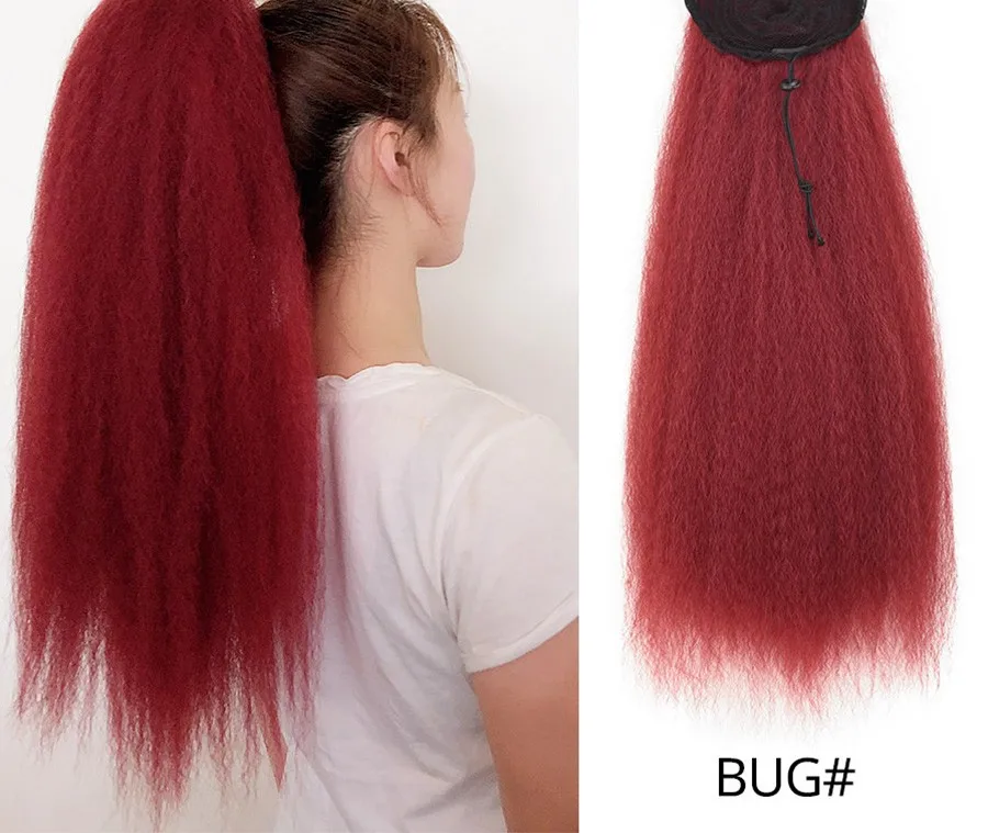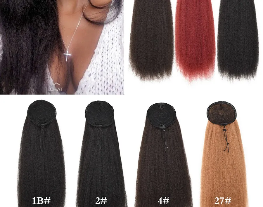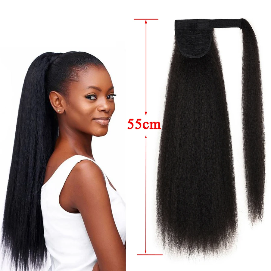 22-дюймовый Регулируемый хвост Yaki на липучке с кулиской, курчавый хвост, Африканский конский хвост, СИНТЕТИЧЕСКОЕ Наращивание волос, Африканский пучок на каждый день